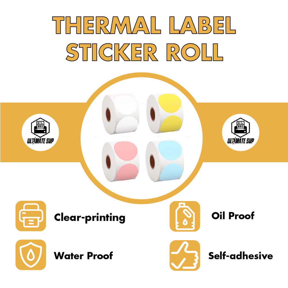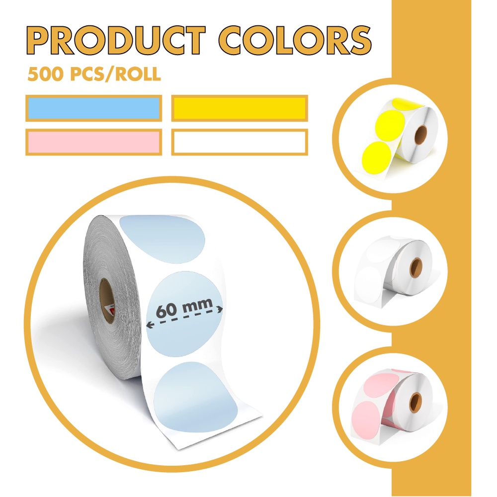 500 Pages 60x60mm Color Round Thermal Label Sticker Roll - Ultimate Supply