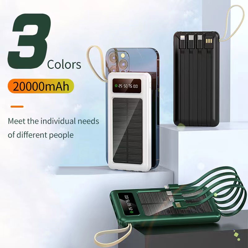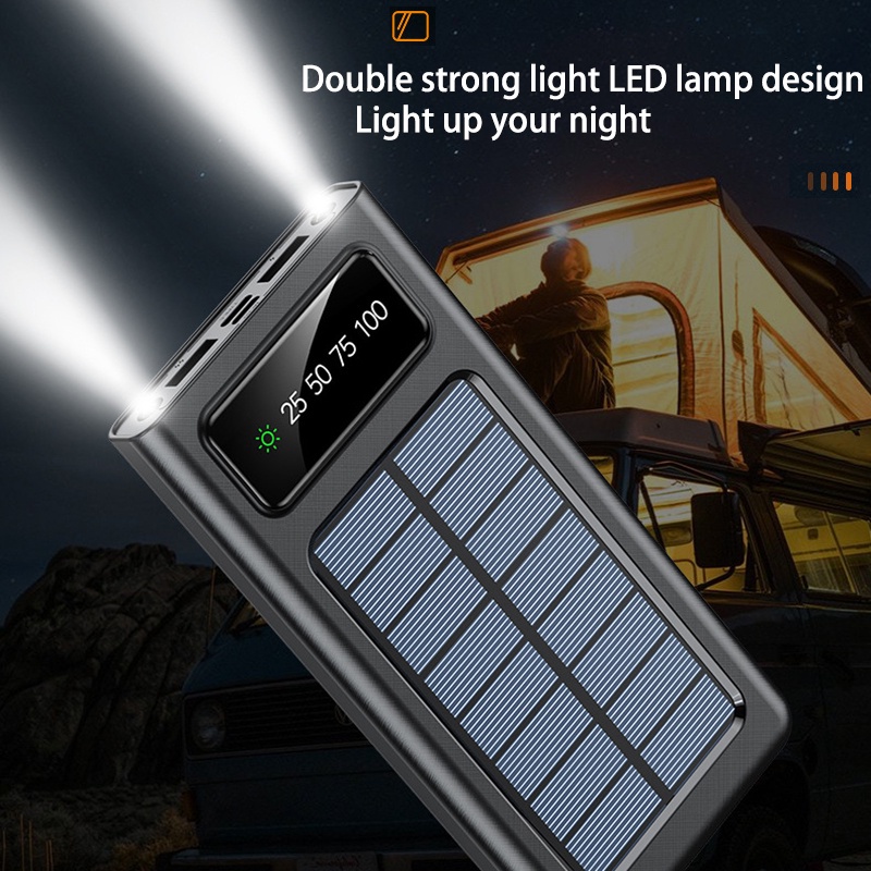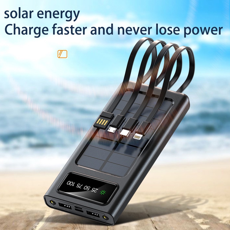 50000mAh Power Bank 4 Cables Solar Powerbank Fast Charging Dual LED Digital Display Portable External Battery Pack 22.5W