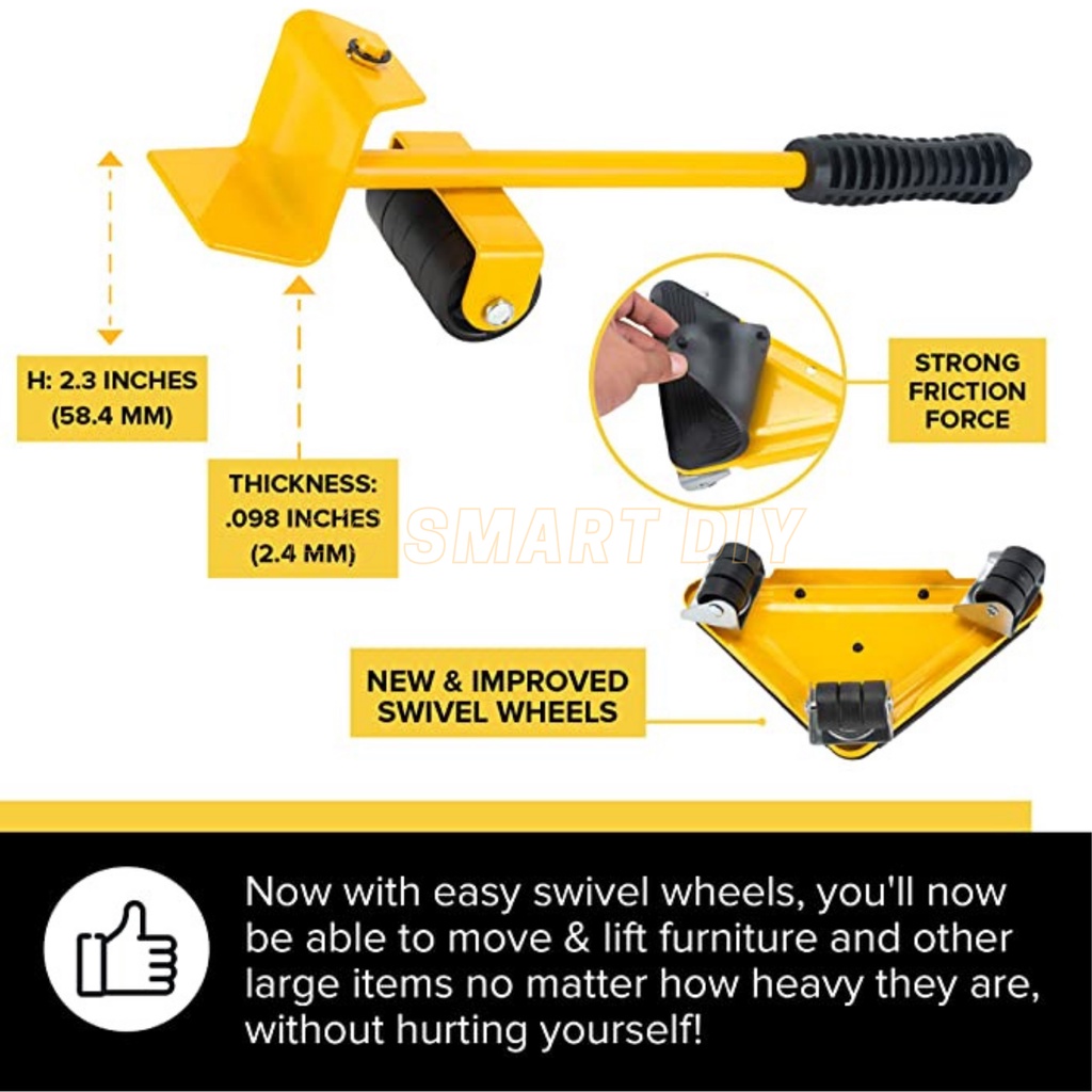 500KG Heavy Duty Mover Tool Furniture Lifter 360 PP Wheel Strong Metal Frame Cabinet Moving Tools Alat Pindah Perabot