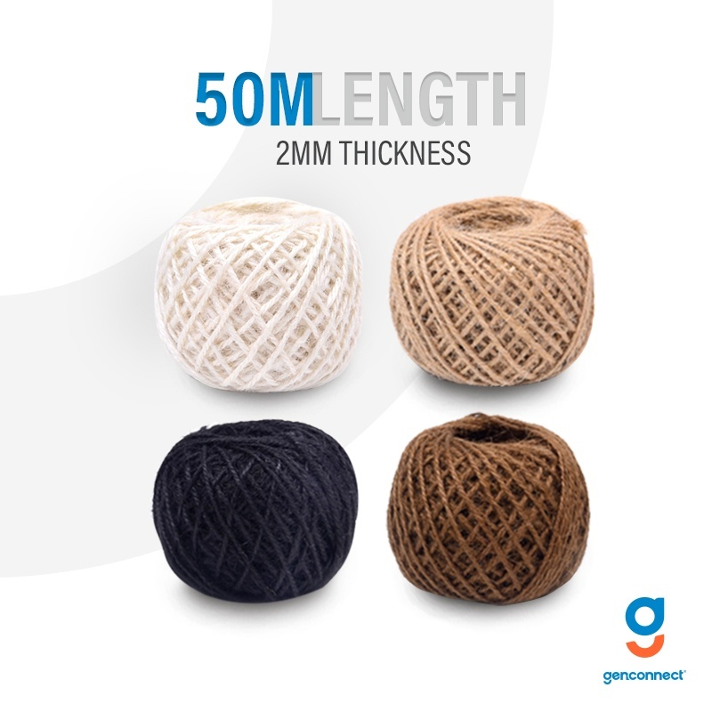 50M Jute Twine Kraft Paper Colour Cotton Rope Raffia String Decoration CNY Hari Raya Gift Packaging