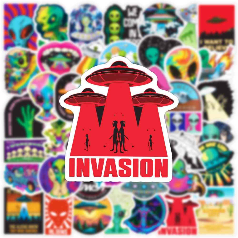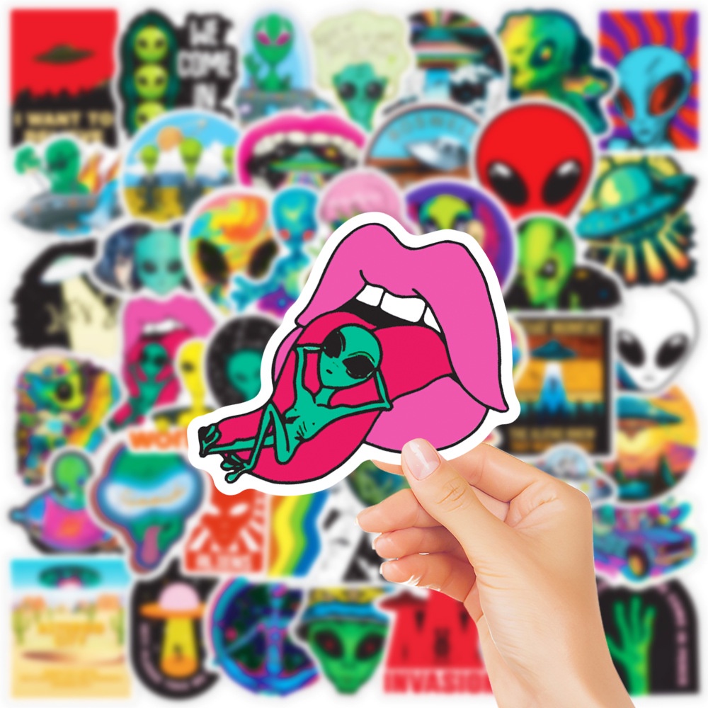 50PCS Alien ET Spacecraft UFO Waterproof Decorative Graffiti Stickers For Helmet Bicycle Hand Account Pencil Case Decals LanLanStickersWorld