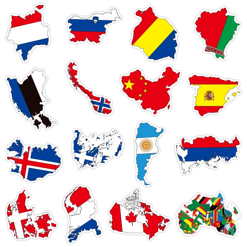 50Pack World Countries Flag Stickers National Flag Sticker Learn World Geography Stationery Decals