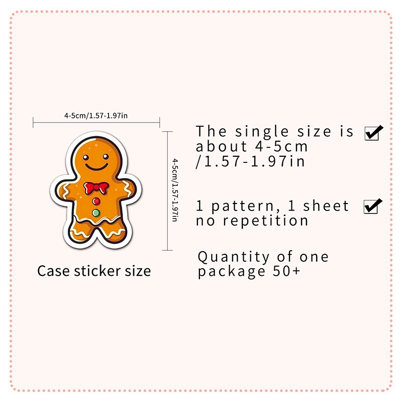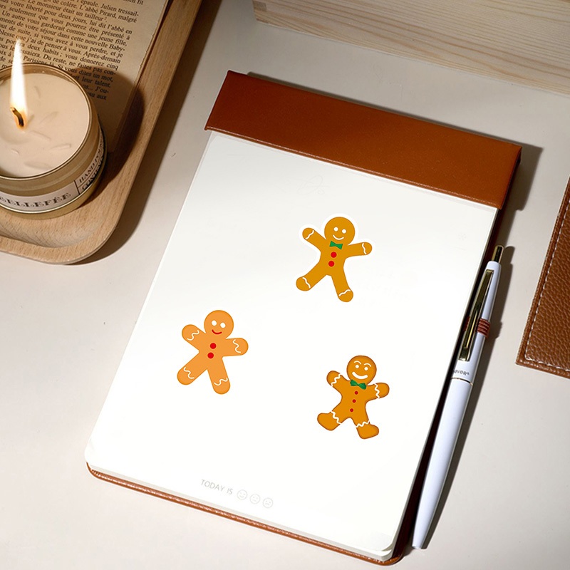 50Pcs Cartoon Gingerbread Man Sticker Laptop Helmet Desktop Decoration DIY Christmas Sticker Toy