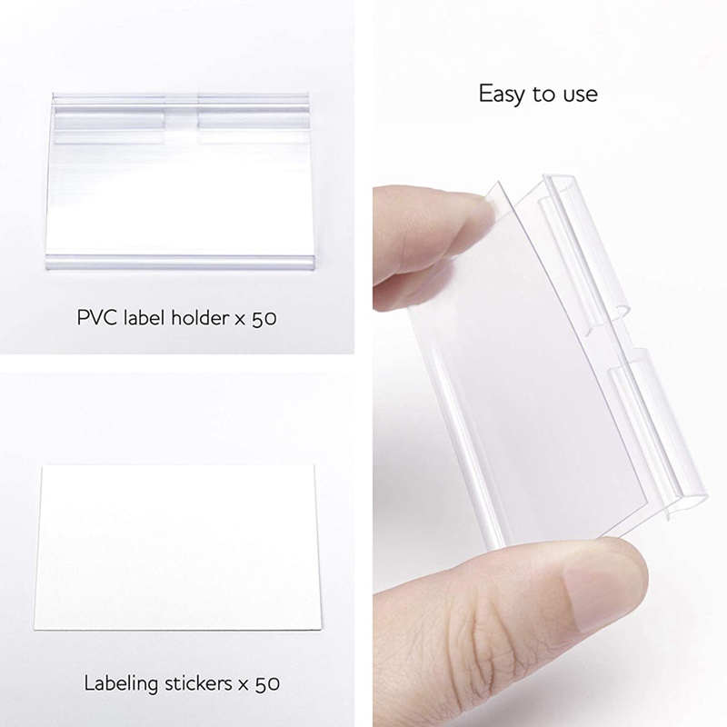 50Pcs Clear Plastic Label Holder Price Tag, Shelf Label Clip Removable Label Holder for Storage Bins Basket Labels