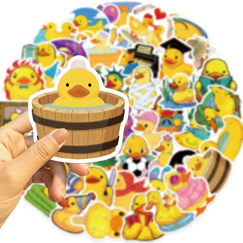 50Pcs Cute Little Yellow Duck Stickers Kawaii Animal Decals DIY Laptop Luggage Waterproof Sticker