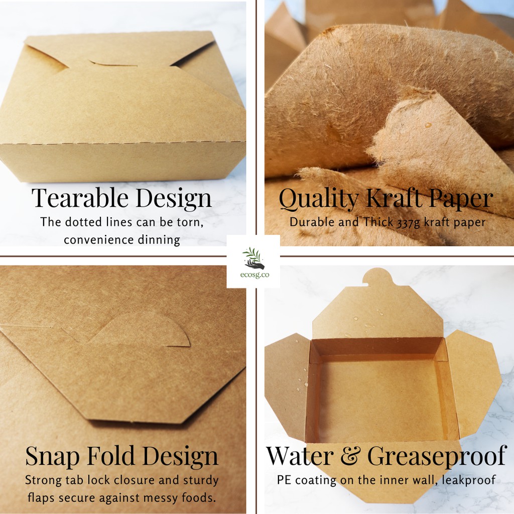 50Pcs Disposable Kraft Lunch Box/ Paper Food Packaging/Takeaway Paper Lunch Box/Disposable Paper Box