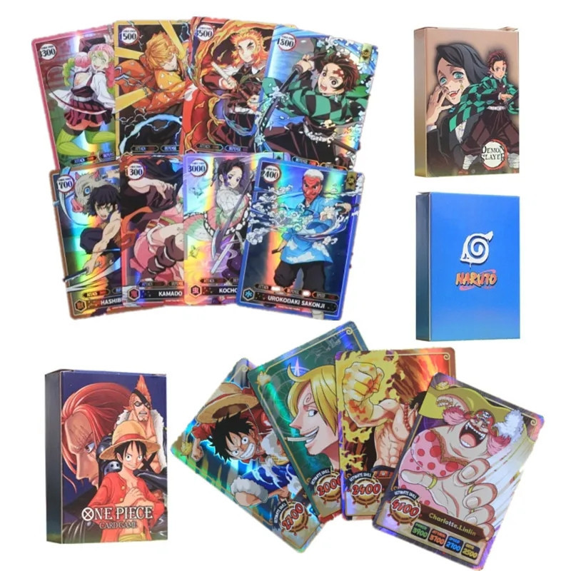 50Pcs/Pack Game Shiny Cards Dragon Ball Naruto One Piece Demon Slayer Goku Luffy Tanjirou Flash Collection Rare Cards Kids Gift
