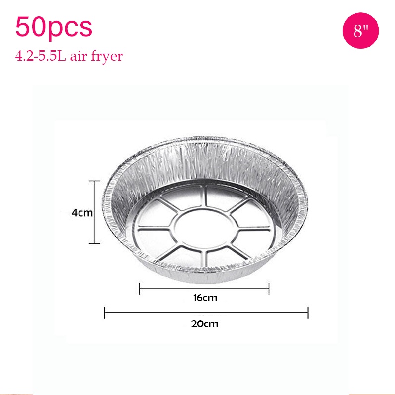 50Pcs aluminium foil baking tray | Air Fryer ATin foil tray Round Tin Foil Pans For Baking Roasting
