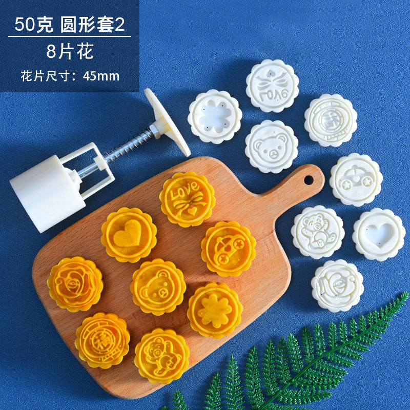 50g round Mid-Autumn Moon Cake Mold Green Bean Cake Biscuit Mold Snow Skin Mooncake Mold Food Molding Kit Complete Food Pastry Mold
