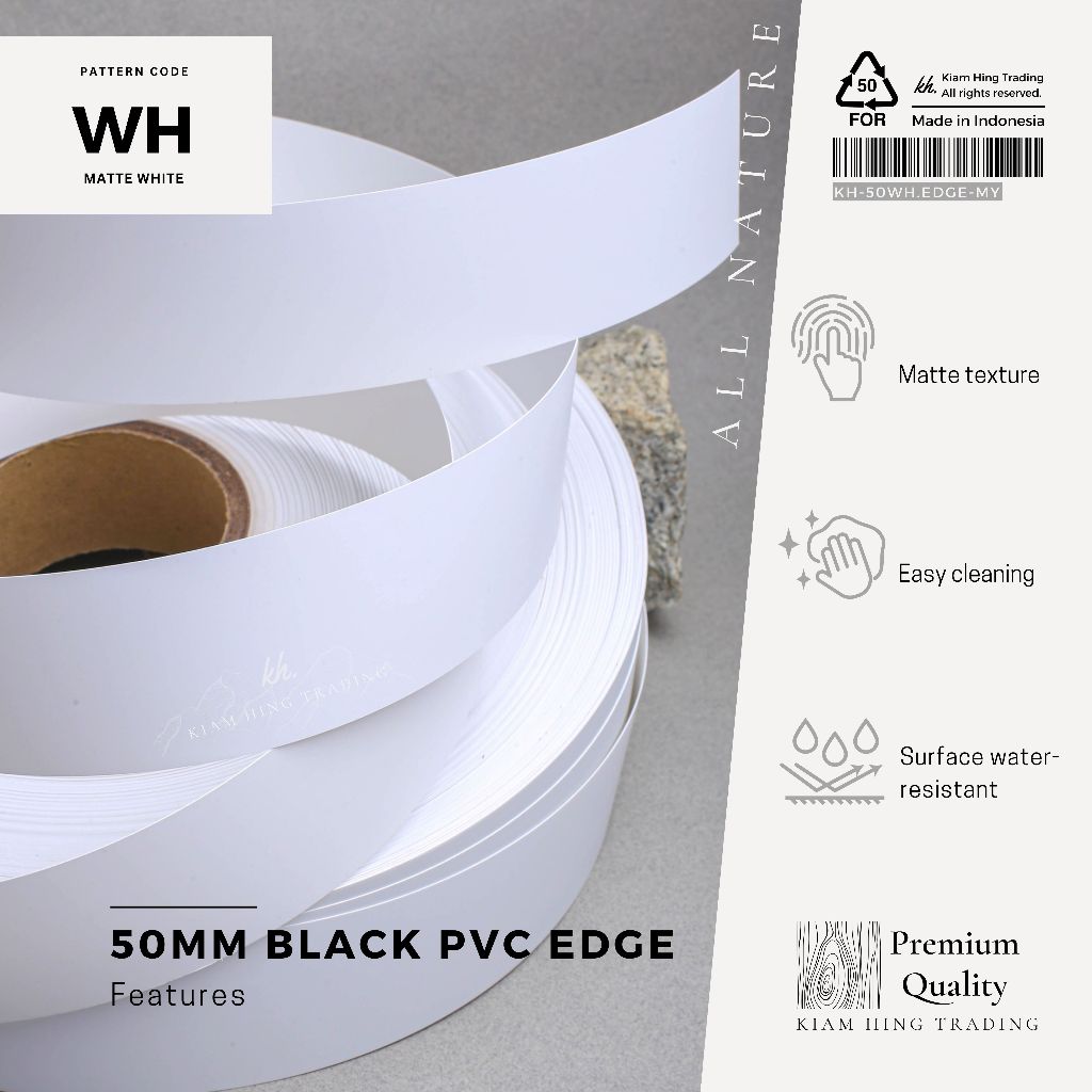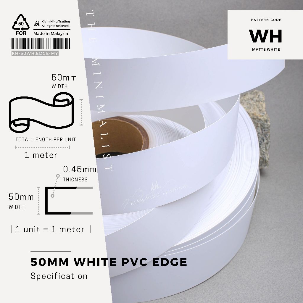 50mm Matte White PVC Edging | Edge for White PVC Lam. | edge protector | edge banding | strip edging | Kiam Hing