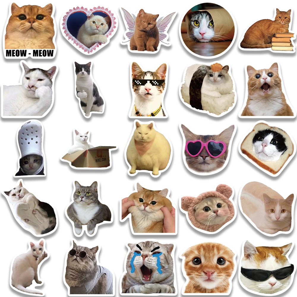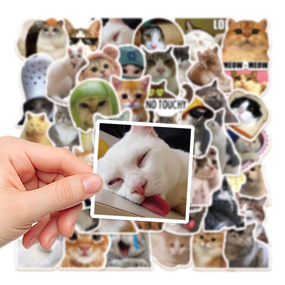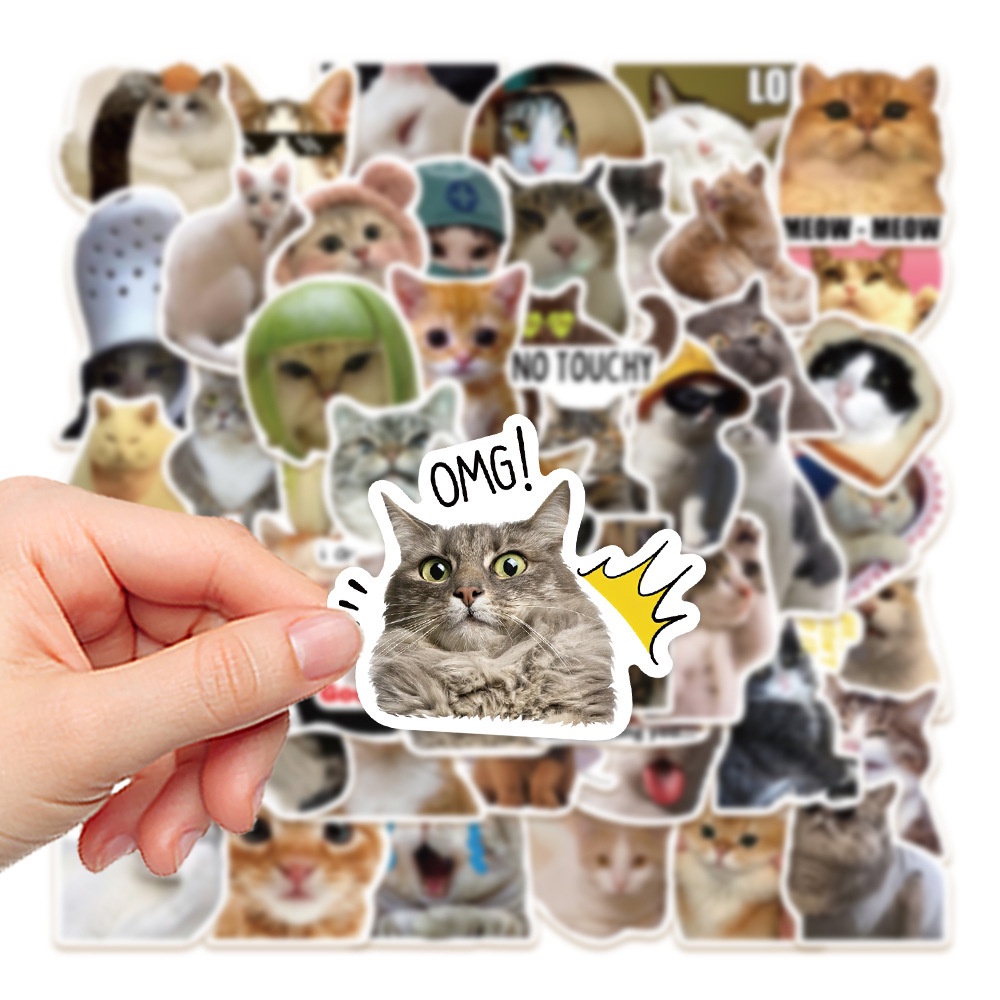 50pcs Funny Kitty Cats Memes Waterproof PVC Stickers