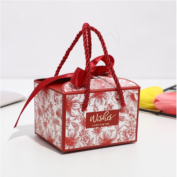 50pcs Kotak Telur Wedding Floral Handle Goodies Box Kotak Doorgift Kahwin Doorgift Box Candy Box Kotak Gula-Gula