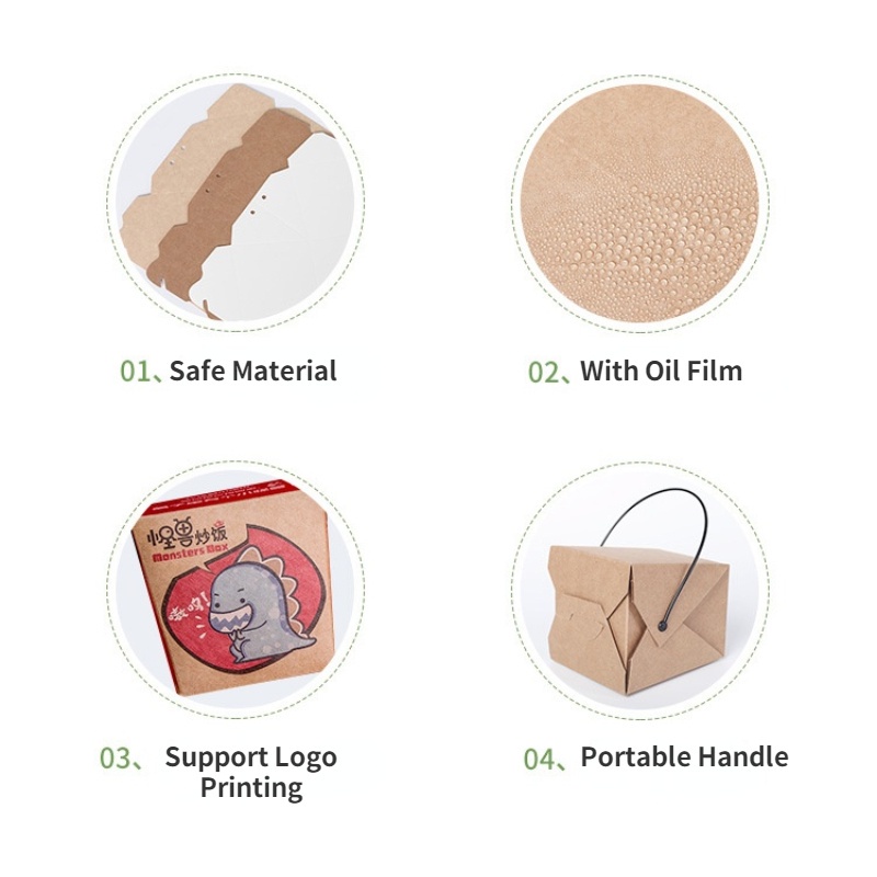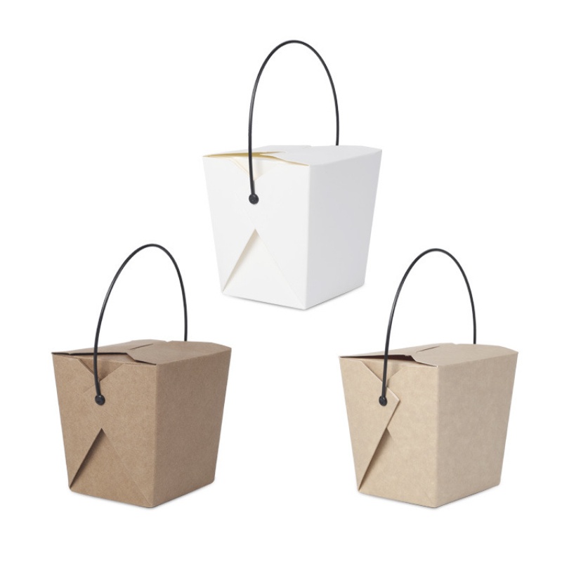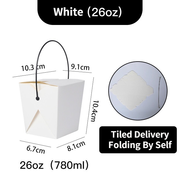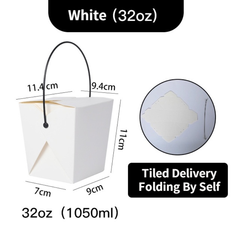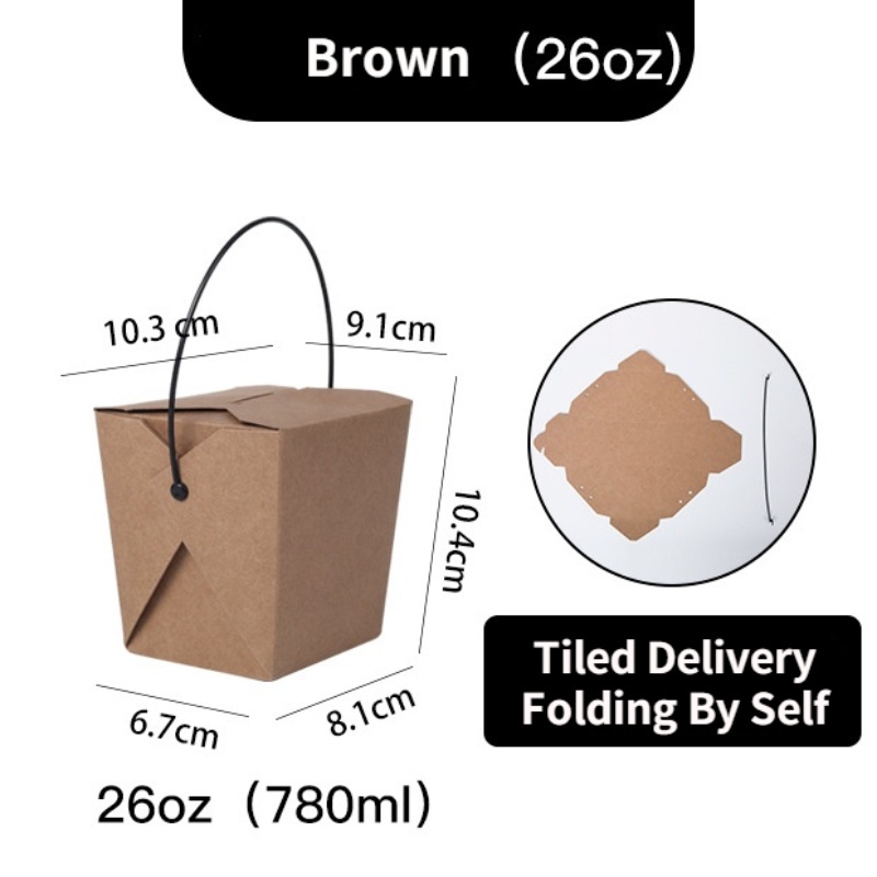 50pcs/lot Takeaway Food Packaging Box With Black Plastic Handle Disposable Fast Food Lunch Box Portable Snack Furit Salad Packaging Box Oil Proof Fried Food Fried Noodles Box