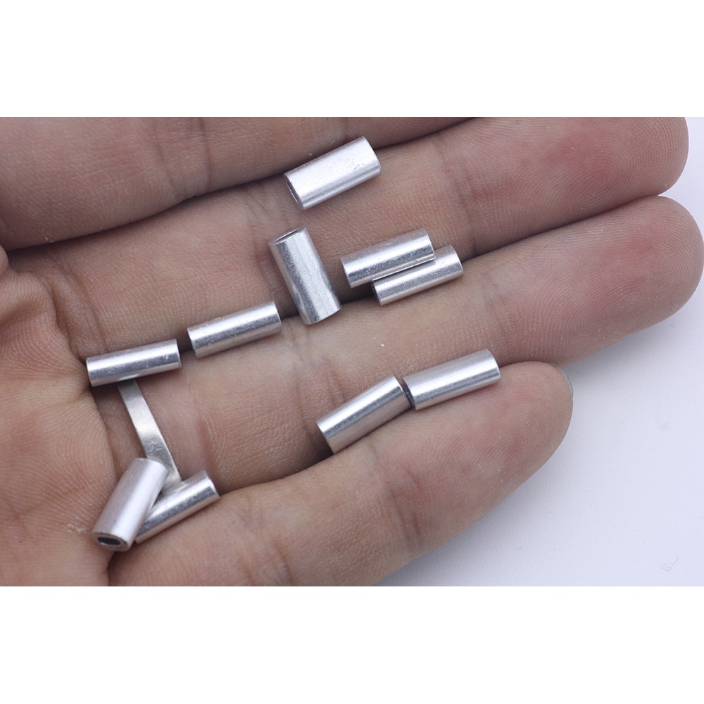 50pcs/lot White Oval Aluminum Fishing Tube Fishing Wire Pipe Crimp Sleeves Connector Fishing Line Accessories aluminum