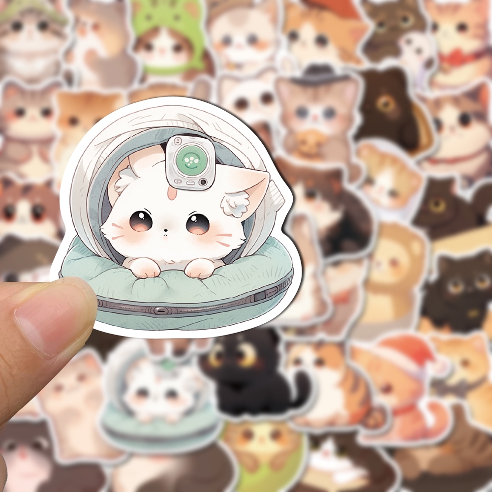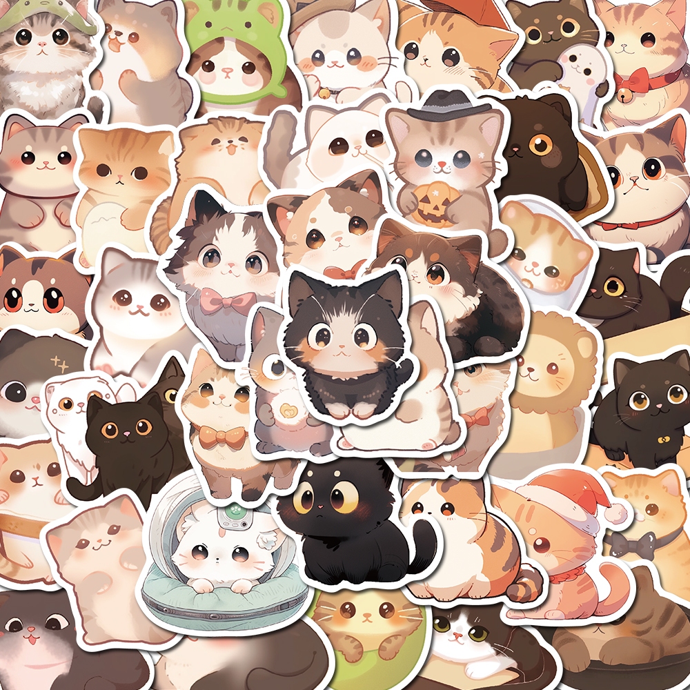 50pcs round eyed cats cute cartoon stickers creative self-adhesive stickers mobile phones iPads water cups waterproof stickers
