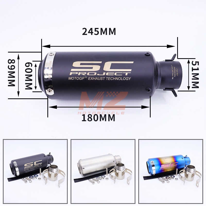 51mm EXHAUST PIPE MUFFLER SC PROJECT S1R UNIVERSAL CARBON FIBRE MESH BLUE MT09 MT25 MT15 R25 R15 Z900 TRACER NINJA