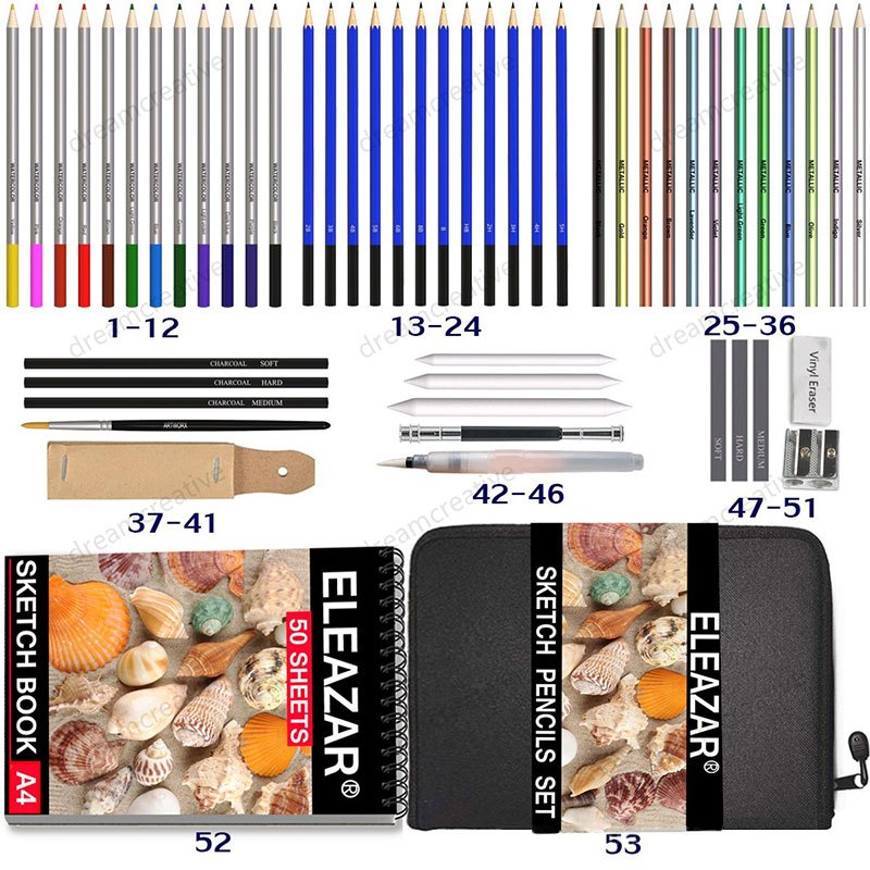 53pcs Sketch Pencil Set Artist Craft Professional drawing Kit Pencils Sketch Charcoal Pencil Painting Tool Graffiti Portable Student Art Supplies