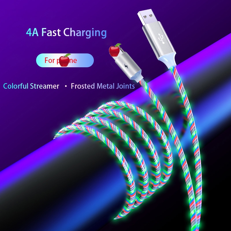 5A Fast Charging Cable LED Luminous Glow Flowing USB Cable Colorful Streamer Data Wire Micro USB Type C Quick Charge Wire for Mobile Phone