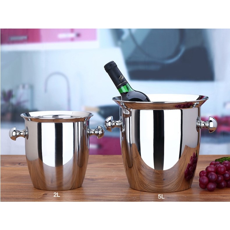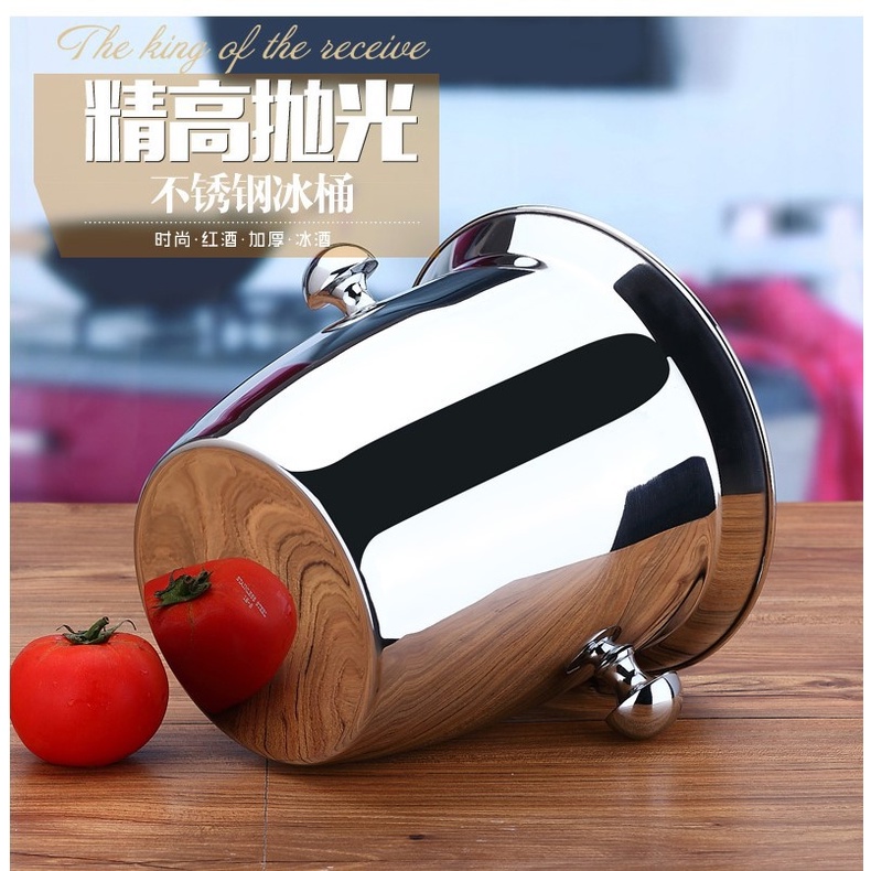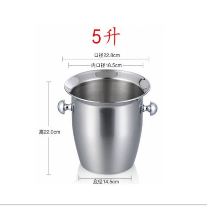 5L Ice Bucket 304 Stainless Steel Horn Champagne Bucket Thickened Ice Bucket Ice Grain Bucket Ice Box Wine Barrel Hotel