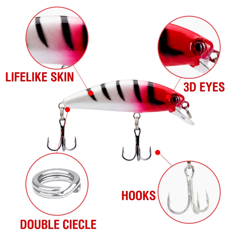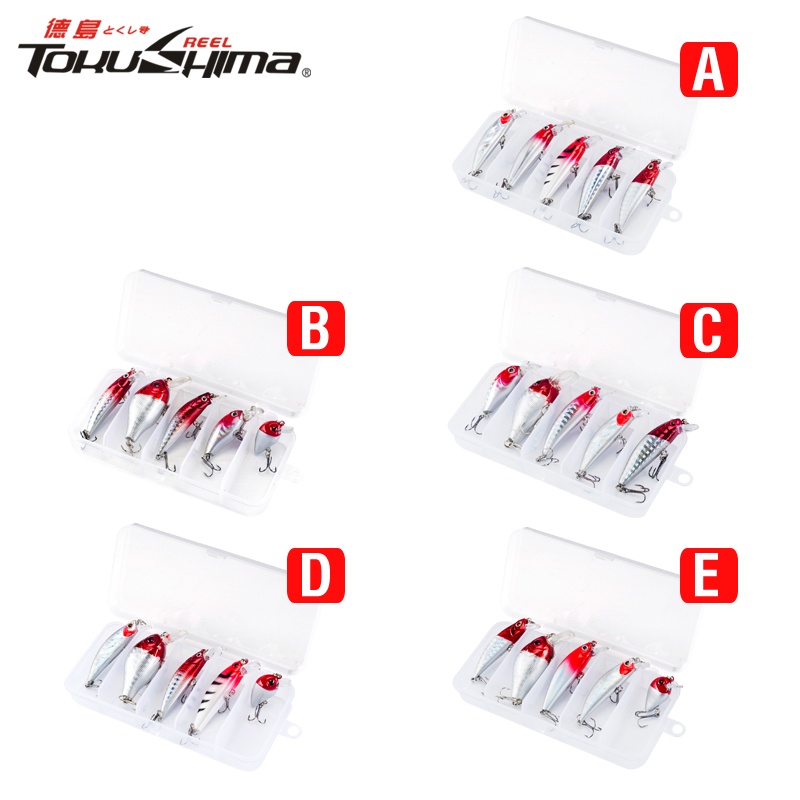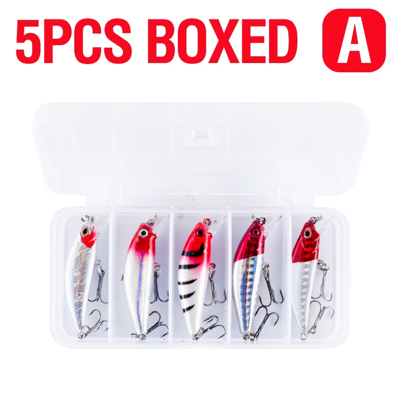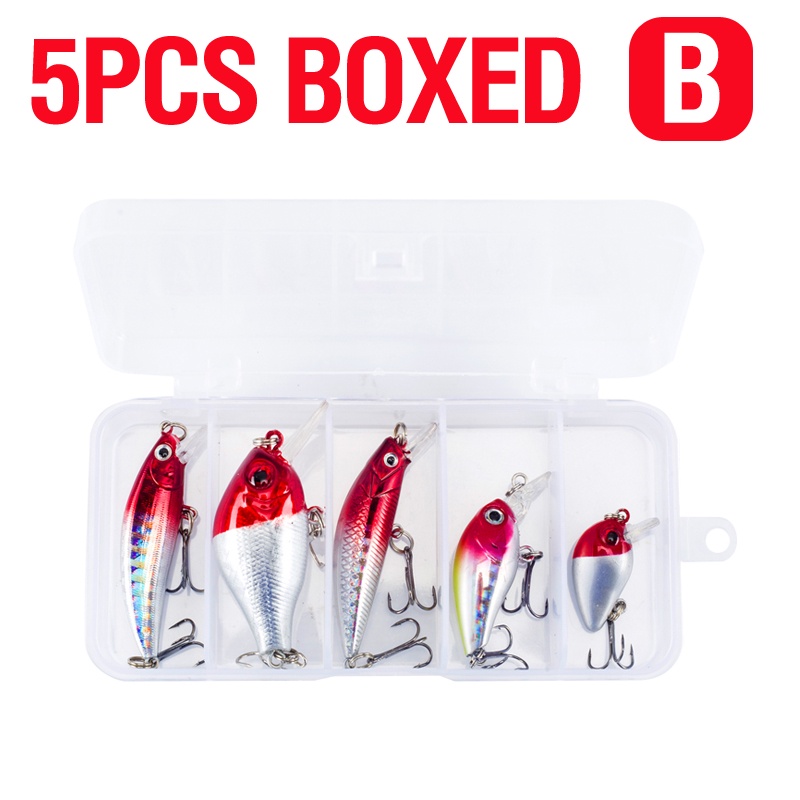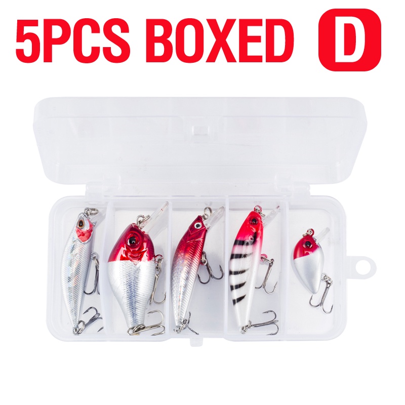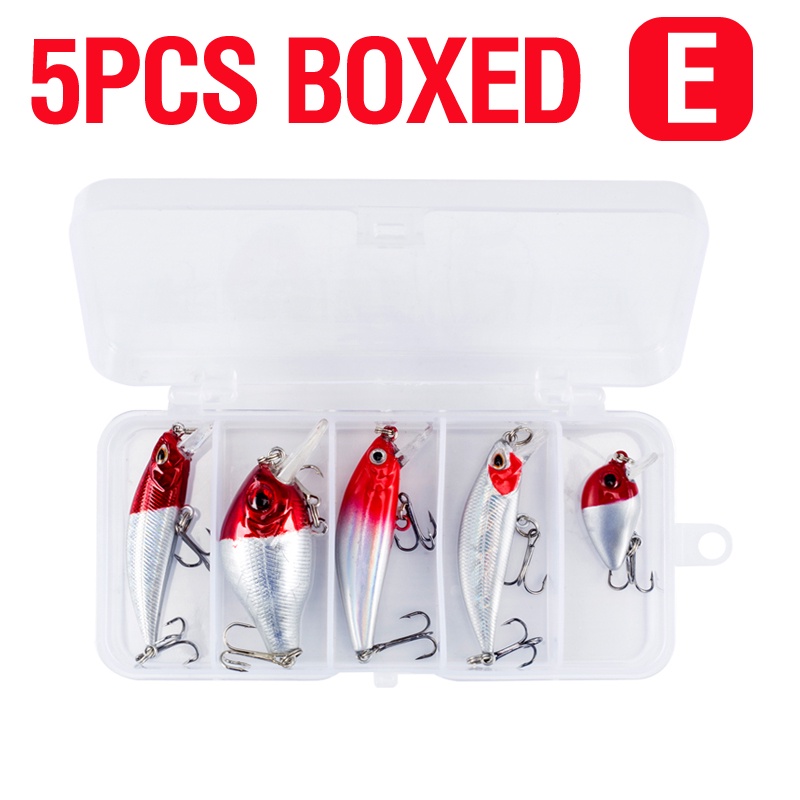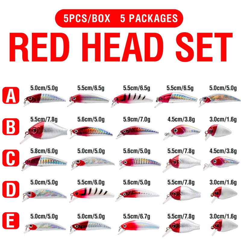 5PCS/BOX Red Head Set Crank Bait Set Buzz Bait Lure Sinking Minnow Plastic Hard Casting Trolling Likelife Skin Fishing Lure