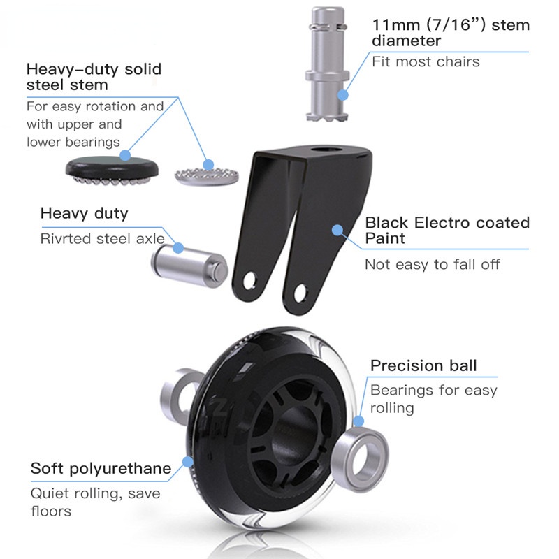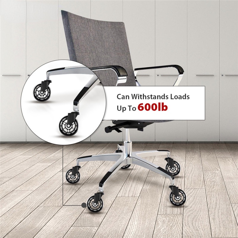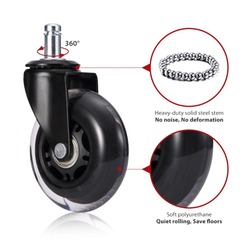 5PCS Swivel Rubber Caster Wheels 3 Inch Office Chair Caster Wheels Replacement 60KG Soft Safe Rollerblade Style Caster