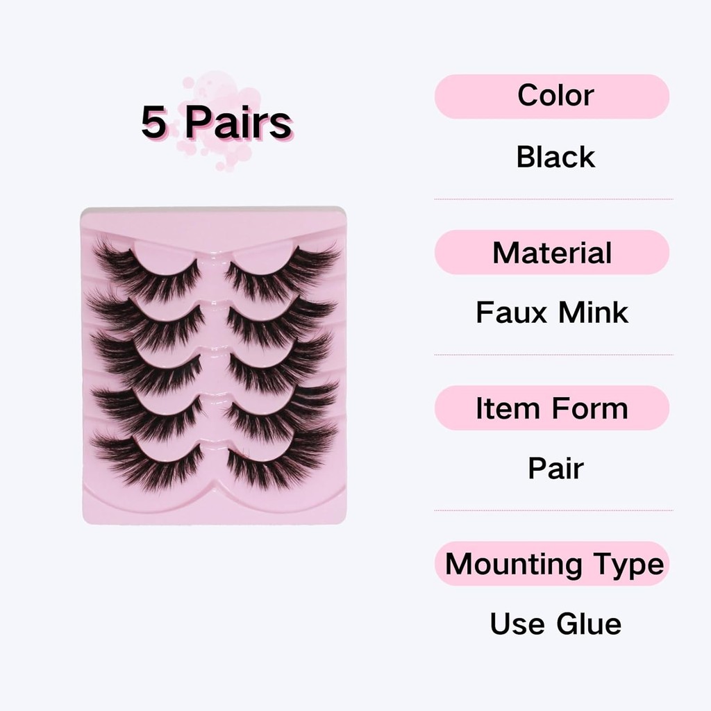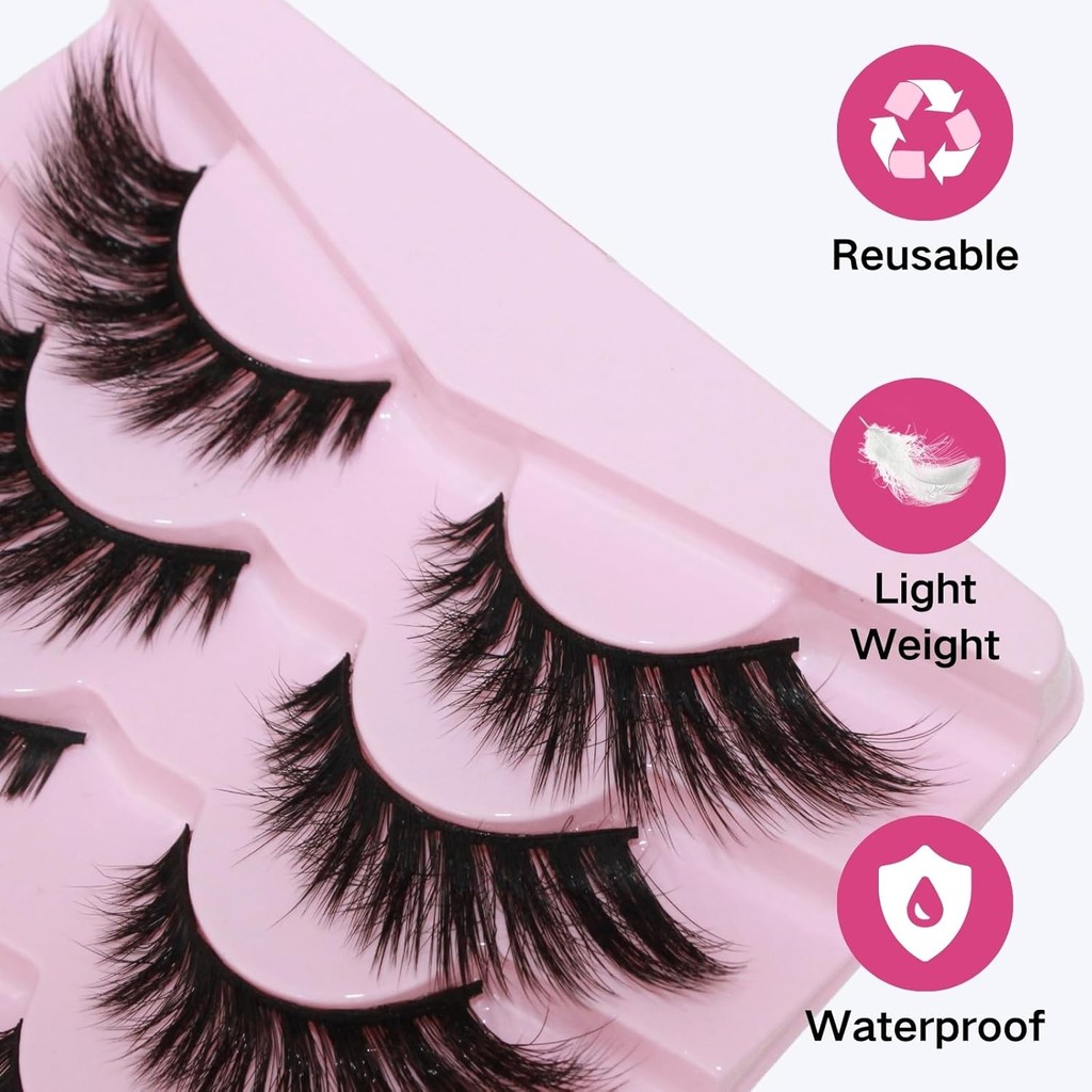 5Pairs of False Eyelash Extensions 5 Pairs Cat Eye Lashes Wispy Fake Lashes Fluffy Cat Eye Lashes Extensions False Eyelashes