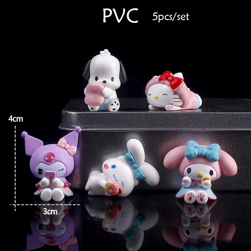 5Pcs/set Mini Sanrio Figure Doll Hello Kitty Kuromi melody Cake Decoration Model Desktop Toy Car Decoration