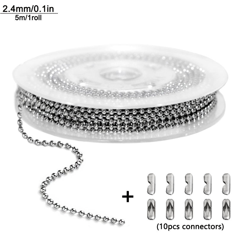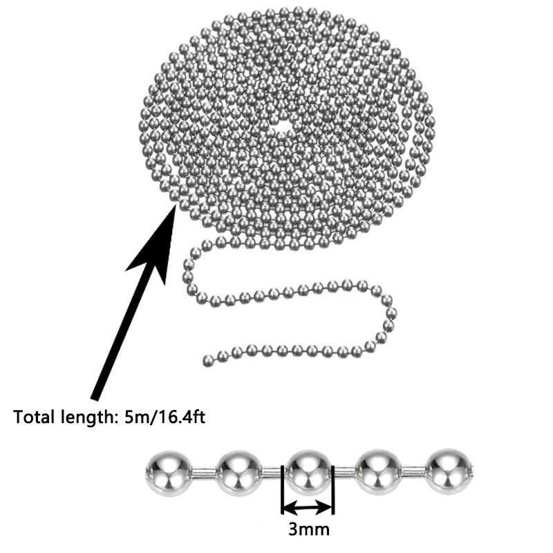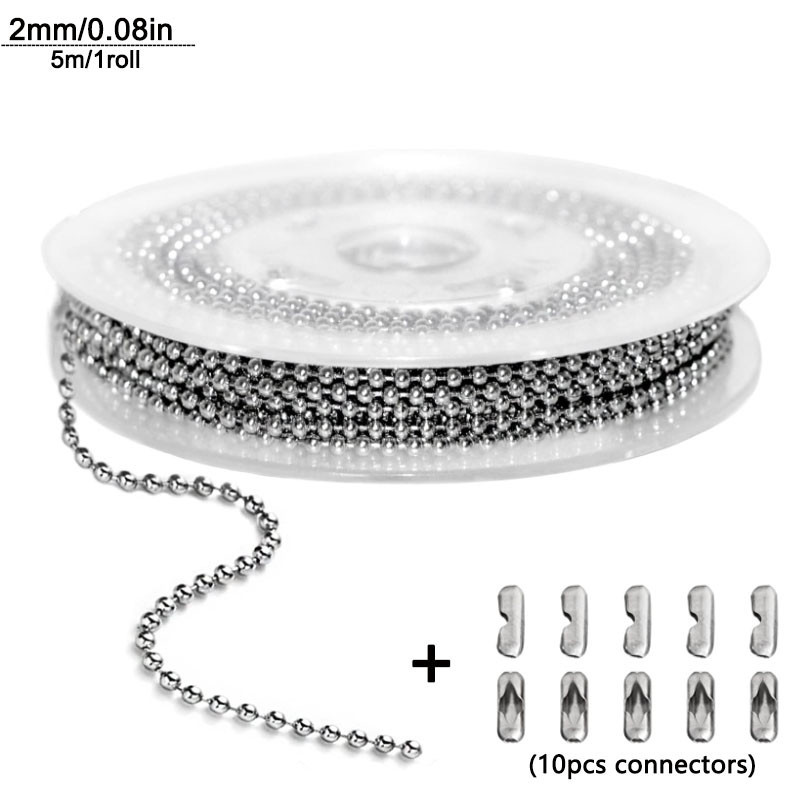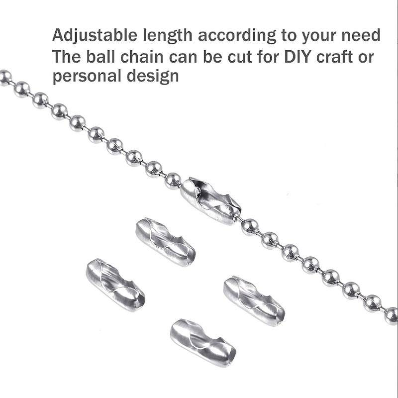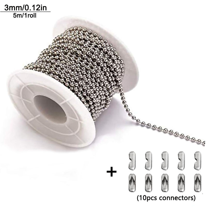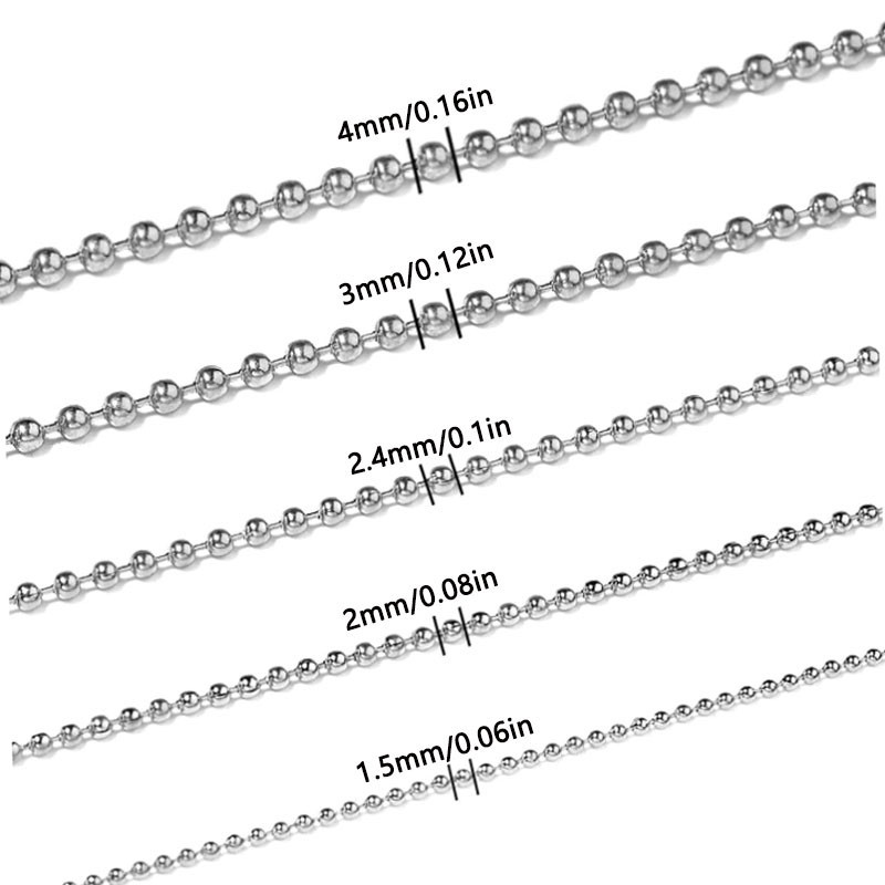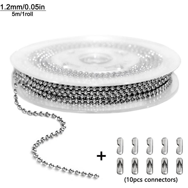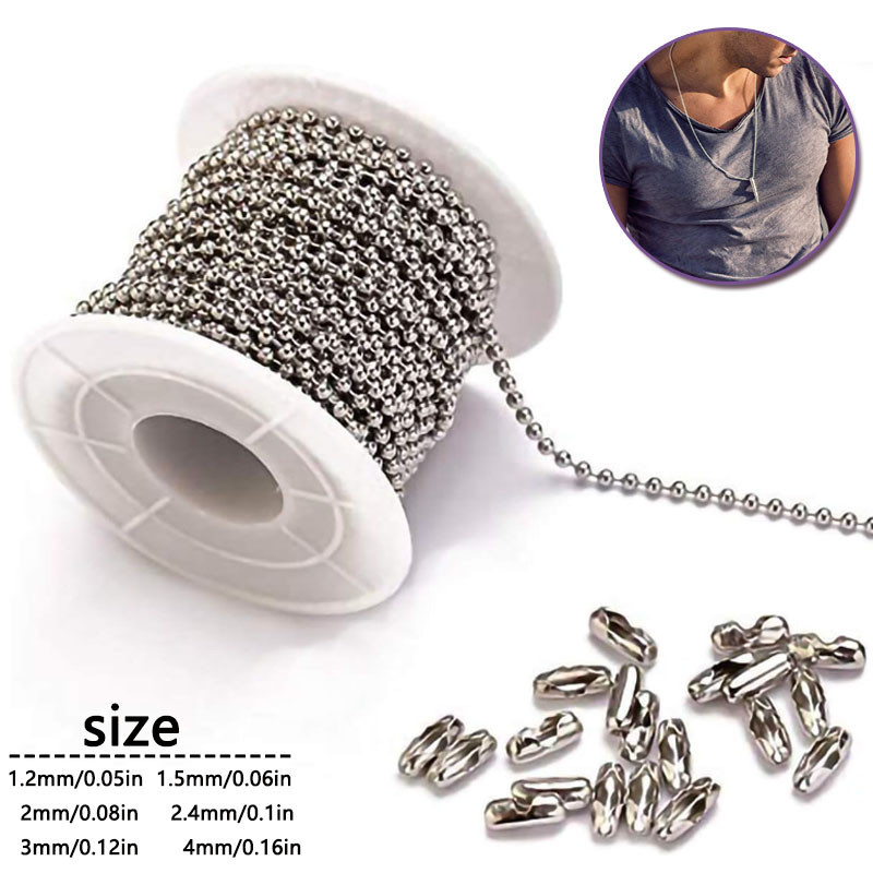 5m1.2-4mm Steel Ball Chain Bead Dog Tag Chain Beaded Necklace Chains for Jewelry Making Bracelet Crafts, Silver Metal Pull Chain Small Ball Bead Chain Roll