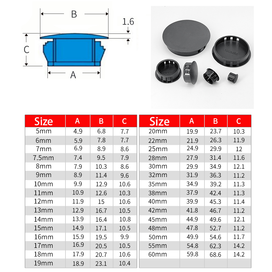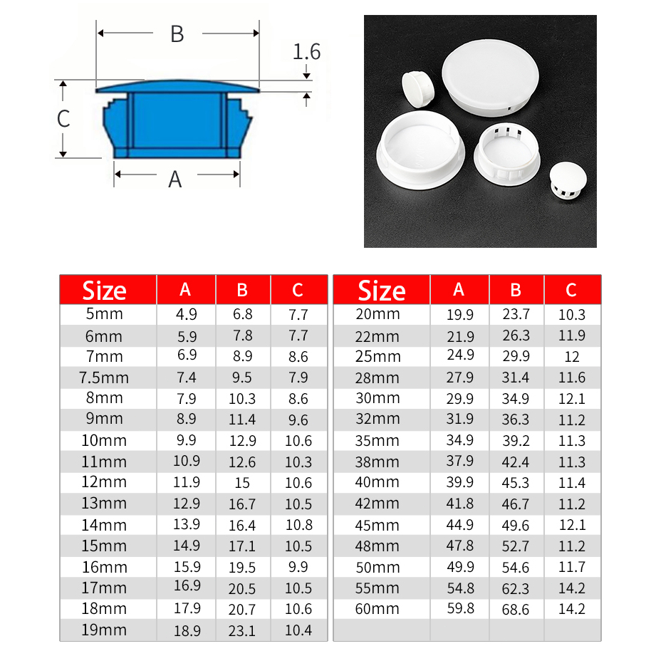 5mm-60mm White Black PVC Pipe Hole Plug Screw Hole Cover Nylon Rubber Grommet slap on hole cover