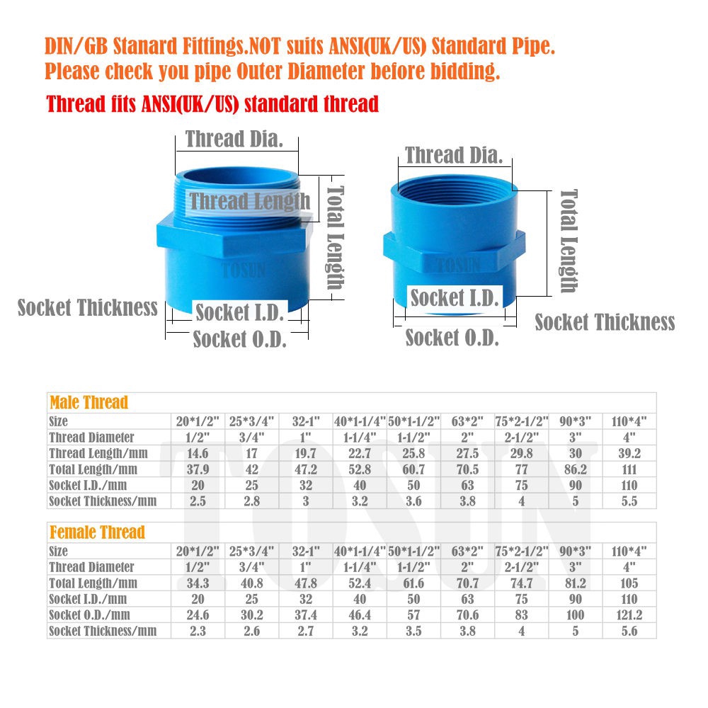 5pcs PVC P/T Socket Valve Socket PVC Pipe Fittings 3 Color DIN/GB Standard