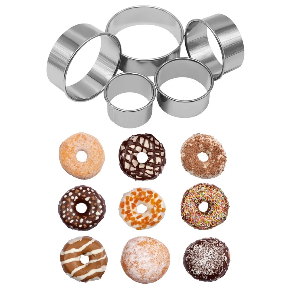 5pcs/set Stainless Steel Round Cookie Biscuit Cutters DIY Pastry Cake Circle Metal Baking Molds Kitchen Accessories