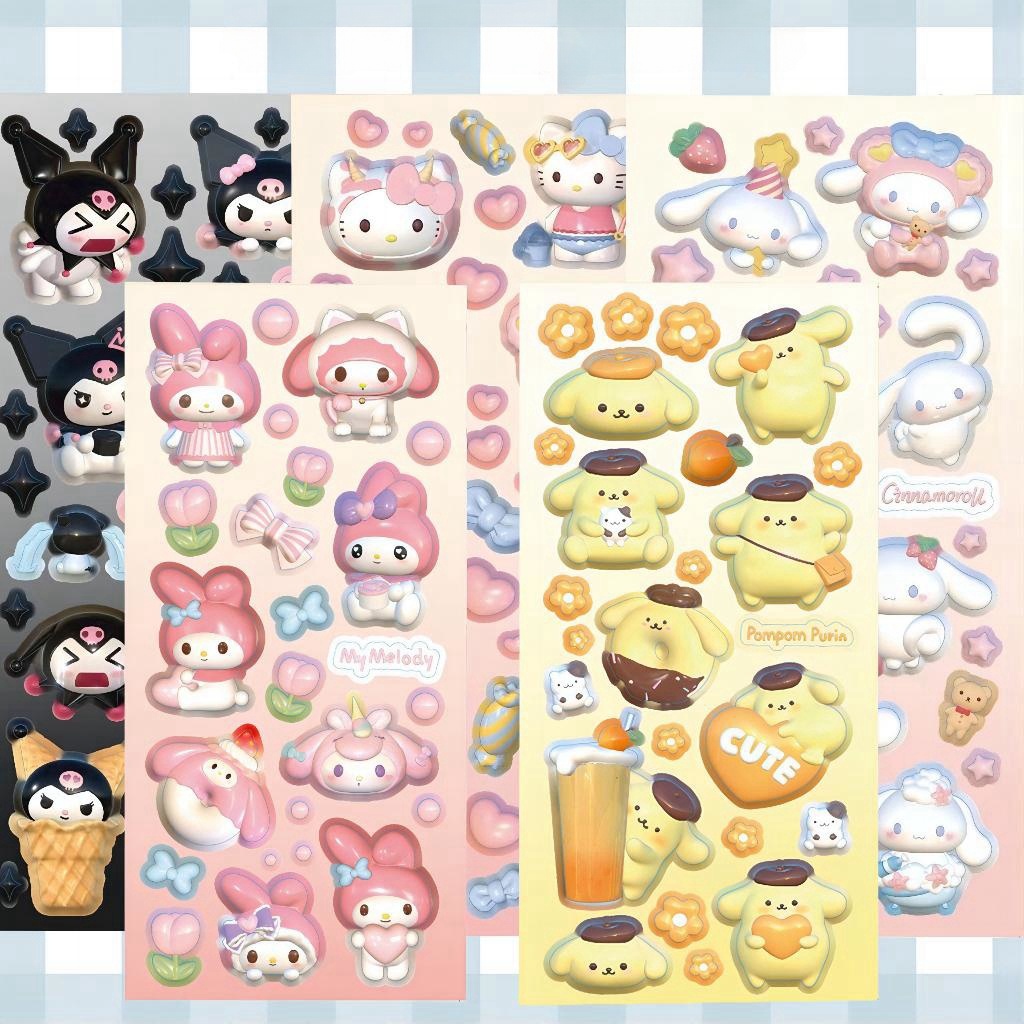 6/1Sheets Sanrio 3D Modeling Stickers For Helmet Bicycle Hand Account Pencil Case Decals LanLanStickersWorld