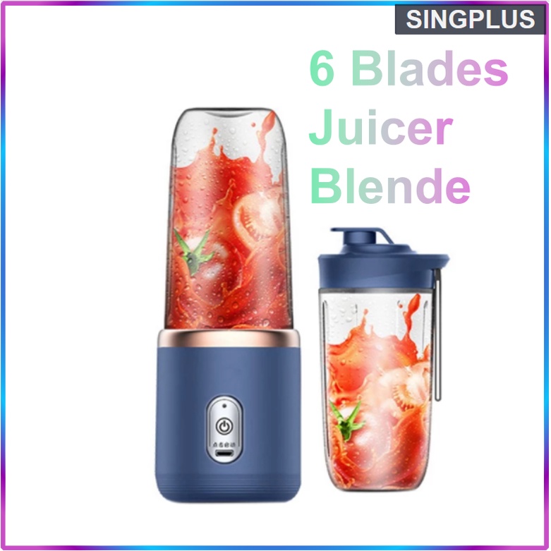 6 Blades Juicer Blender with Juicer Cup and Lid Portable USB Rechargeable Small Fruit