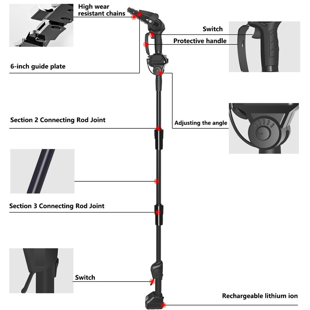 6 Inch Brushless Telescoping Pole Electric Chainsaw Scalable Height Cordless Portable Pruning Saw Power Tool