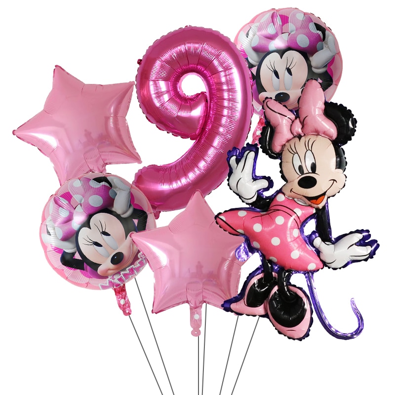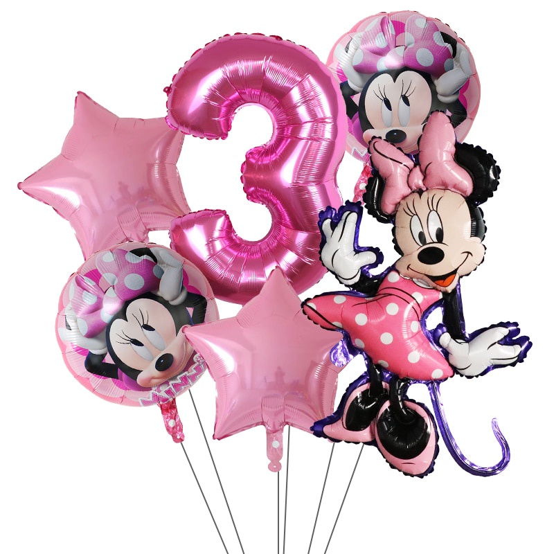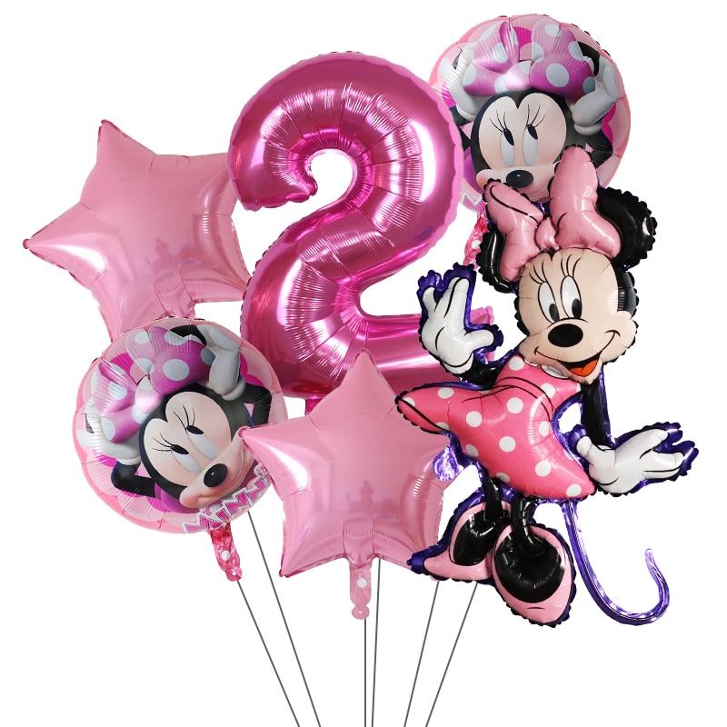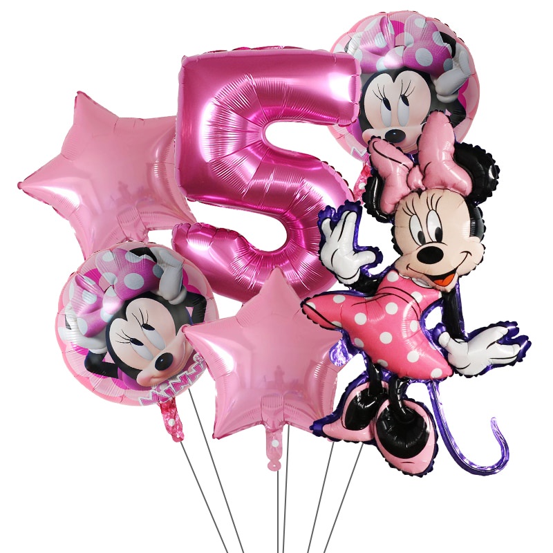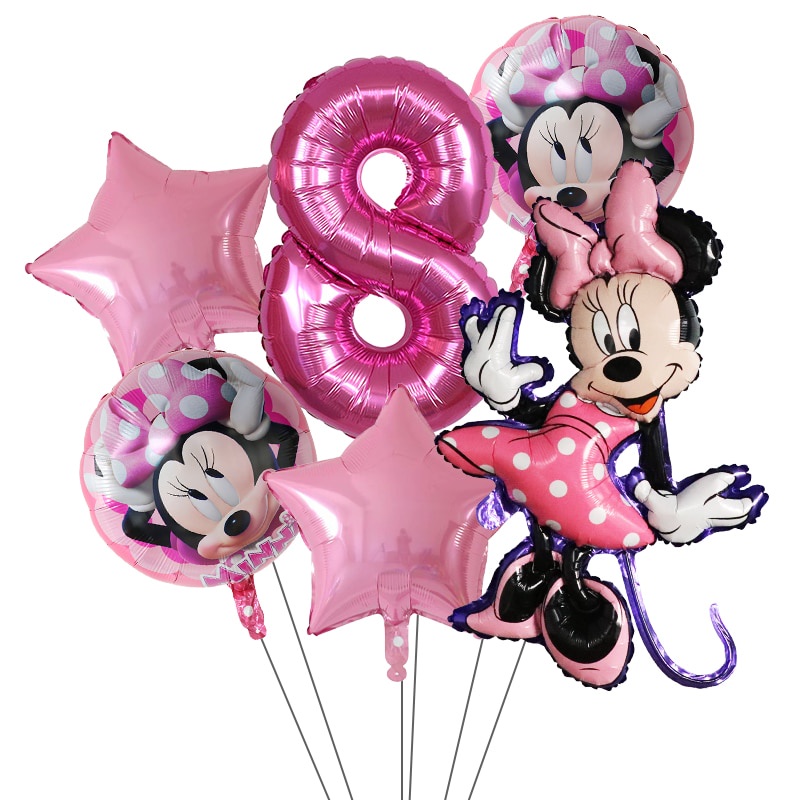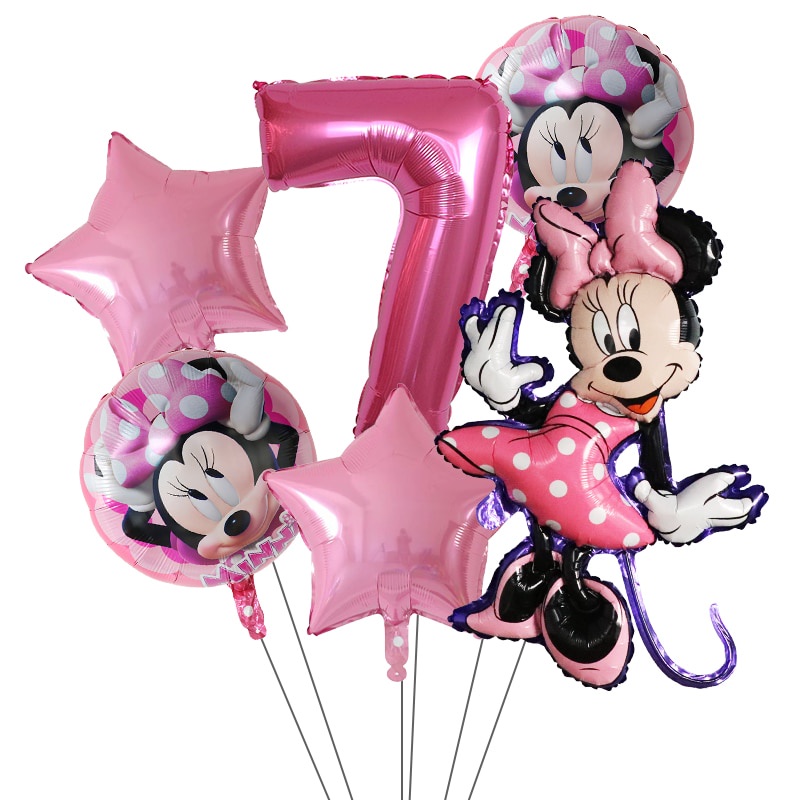 6 PCS Large Minnie Mouse Foil Balloon Set Birthday Party BalloonsAdult & Kids Party Theme Decorations Cartoon Minnie Mouse Party Supplies Helium Lovely Toys