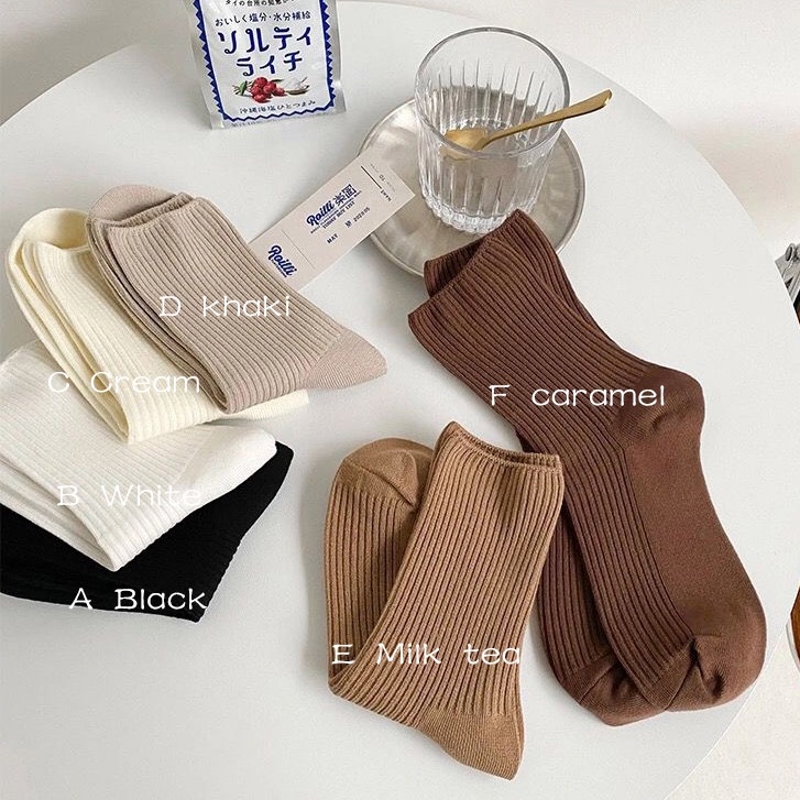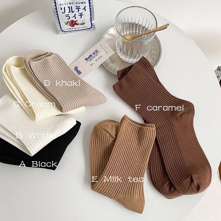 6 Pairs Cute Solid color socks Women Cotton Socks Cute Multi-Colored White Socks Comfortable