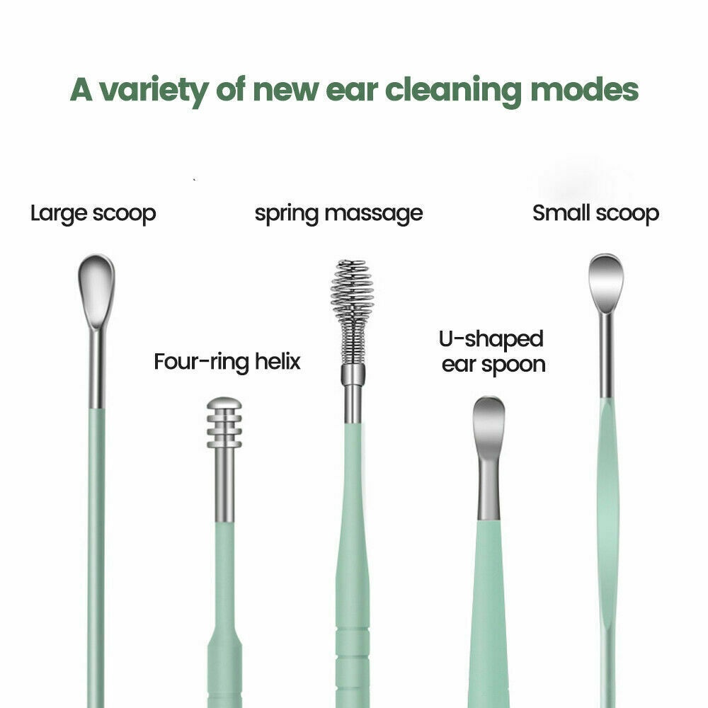 6 Pcs Portable Ear Cleaner Set / Stainless Steel Curette Spring Earwax Removal Kit / Professional Ear Care Cleaning Tool