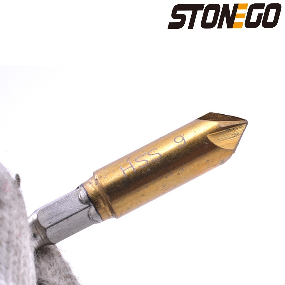 6 Pcs Titanium coating Countersink Drill Bit Set 1/4'' Hex Shank HSS 5 Flute Countersink 90 Degree