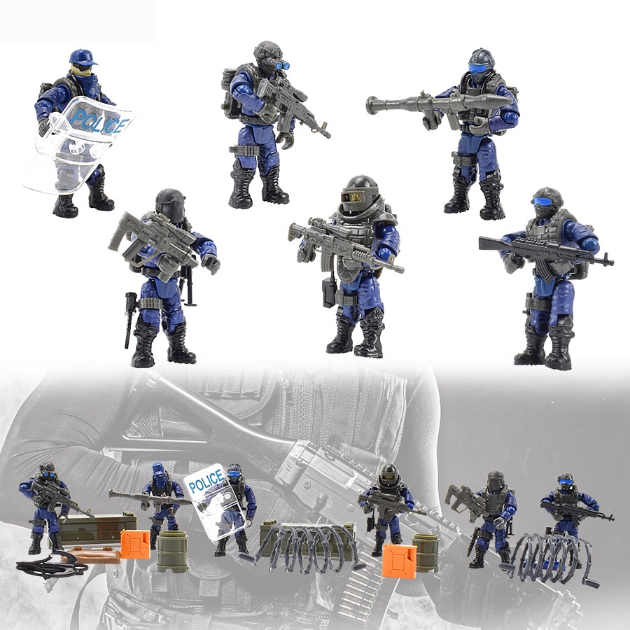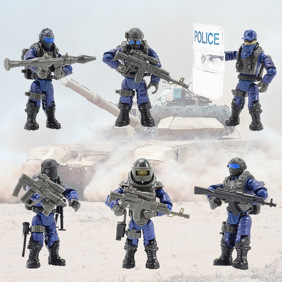 6 Soldiers/Set Police Figure Toys for Boy Military Building Blocks Joint Movable Doll Assembled Model Bricks Toy Collection
