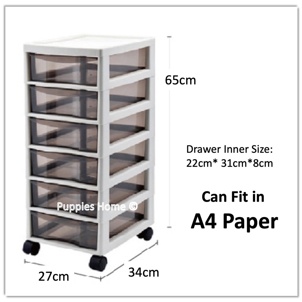 6 Tier A4 File Storage Drawer with Wheels Roller Under Table Document Organizer