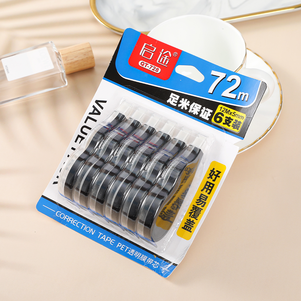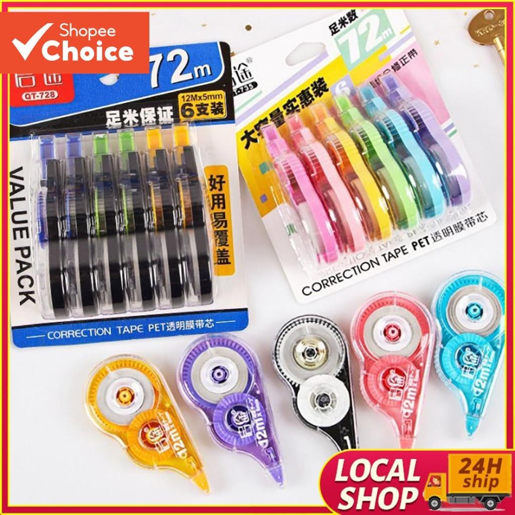6-in-1 Correction Tape Set, Total 72m, Easy Refill, School & Office Supplies for Students and Teachers