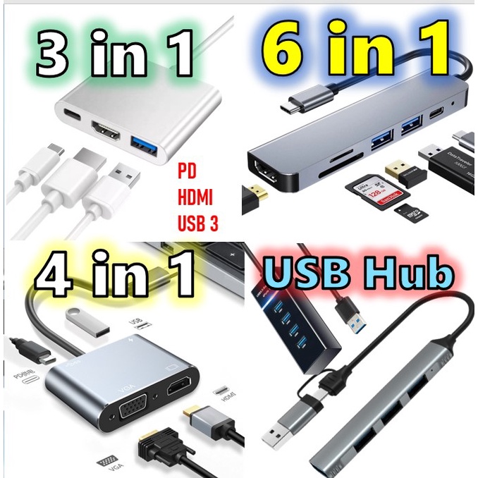 6 in 1 Type C adapter USB port converter sd card 4k HDMI USB HUB PD micro SD TF usb C mac hubs usb 3.0 hub