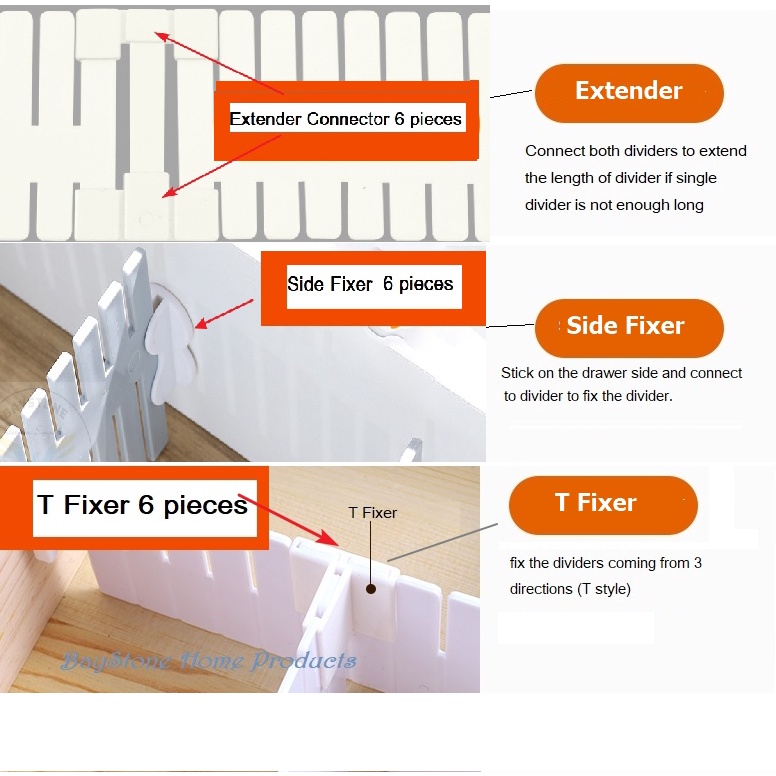 6 pcs Extender Connector PARTS for Drawer Divider Partition Organizer DIY Space-saving Drawer