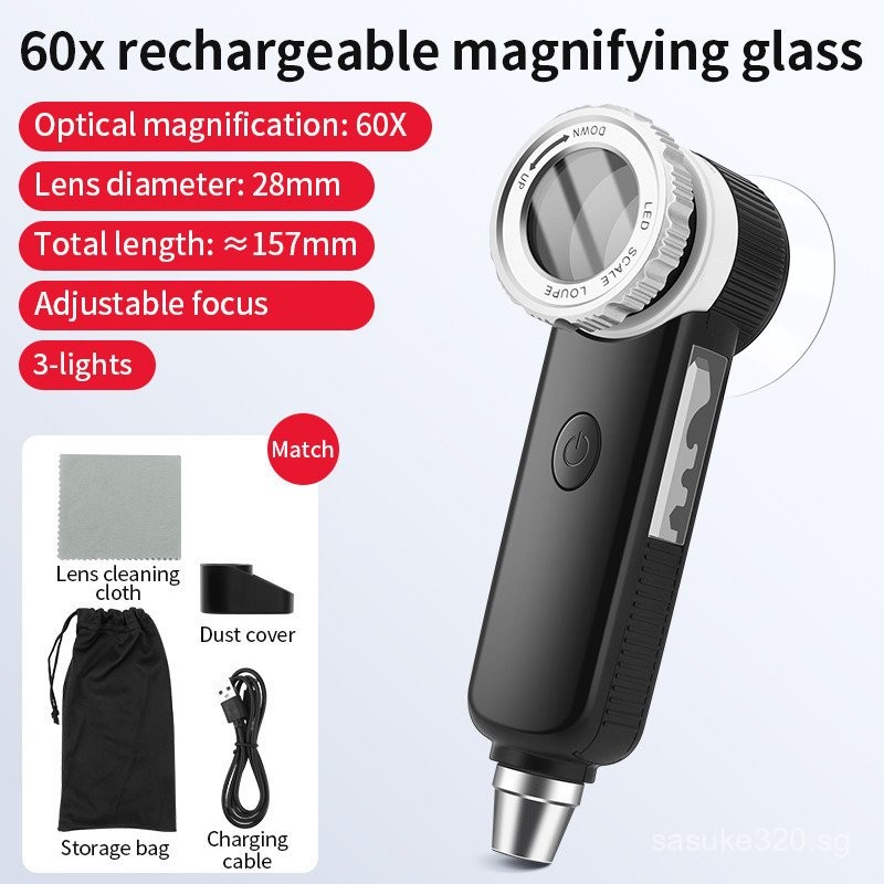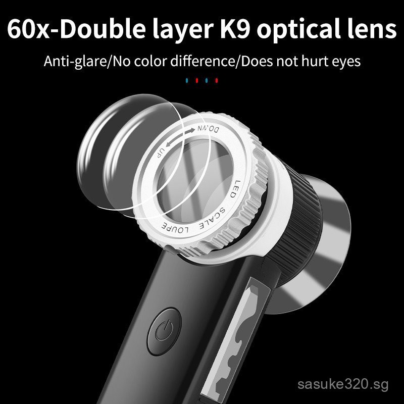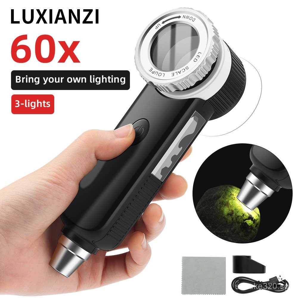 60X Magnifying Glass USB Rechargeable With LED UV lights For Jewelry Appreciation Magnifier