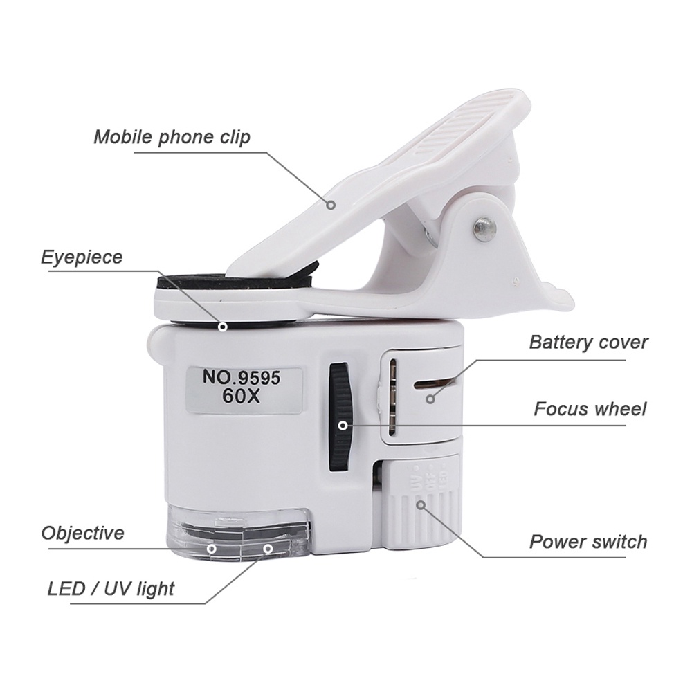 60X Mobile Phone Microscope Magnifier Universal LED Instrument Macro Lens Optical Zoom With Micro Camera Clip Optical Instrument