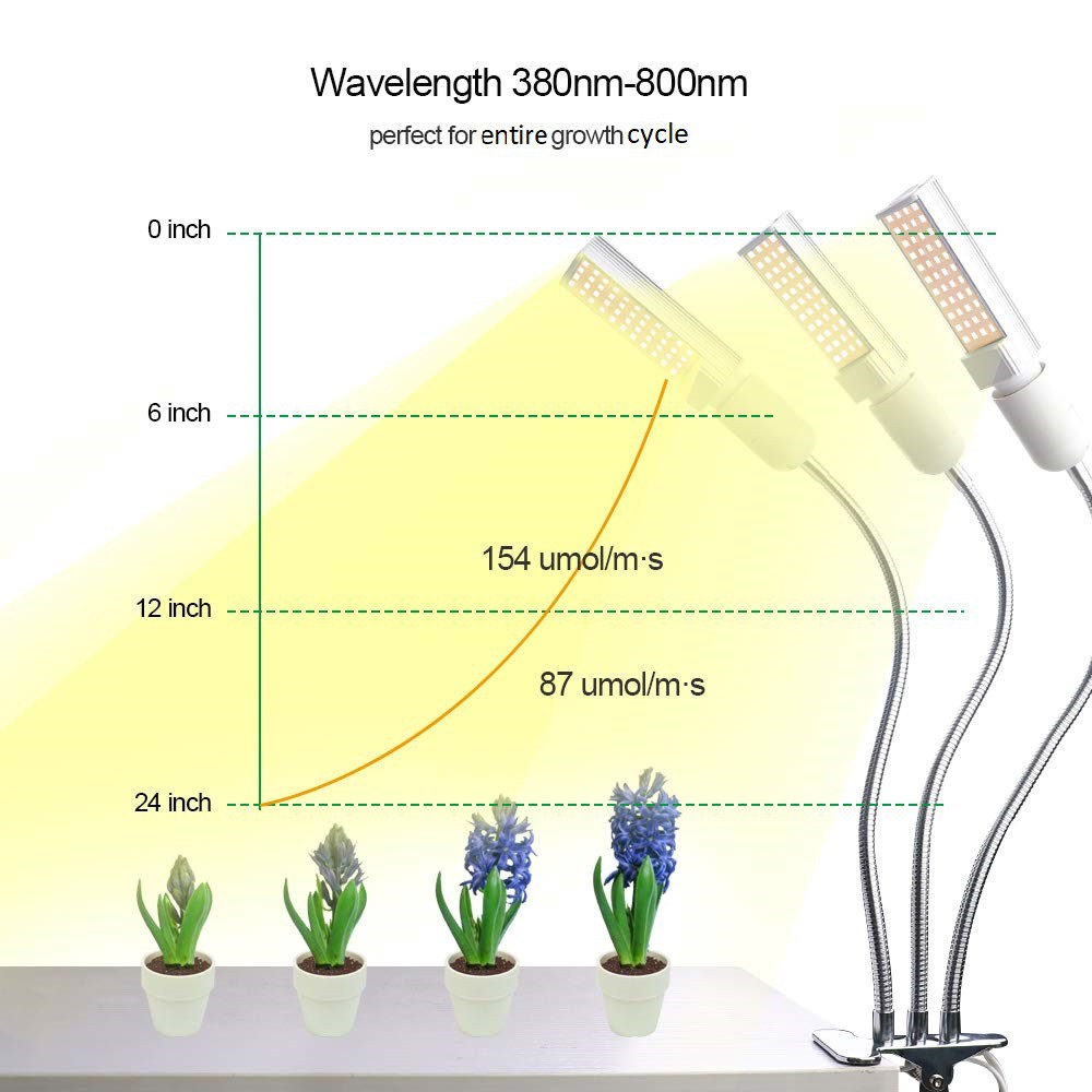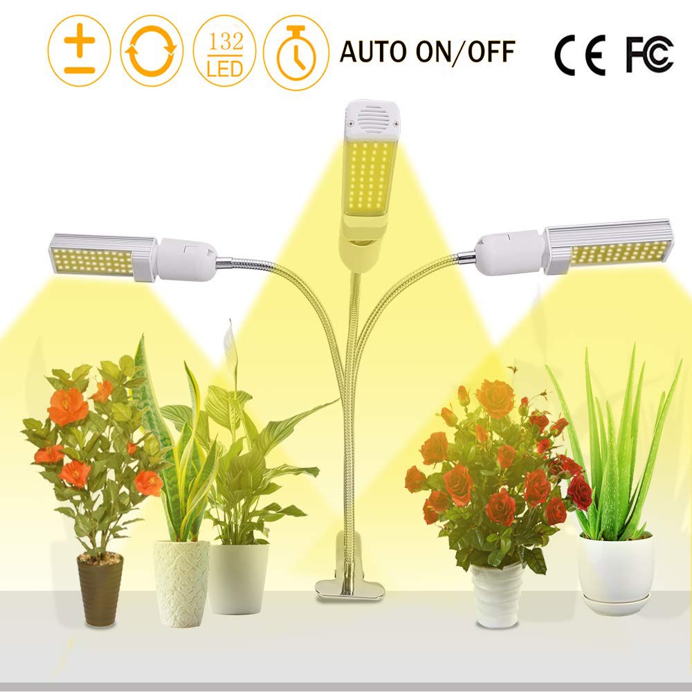 66W Full Spectrum LED Plant Timer Grow Light USB 5V 3A, Triple Soft Neck E27 Lamp Head for Indoor Home Office Desktop