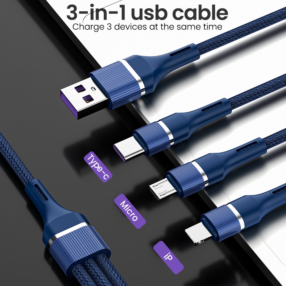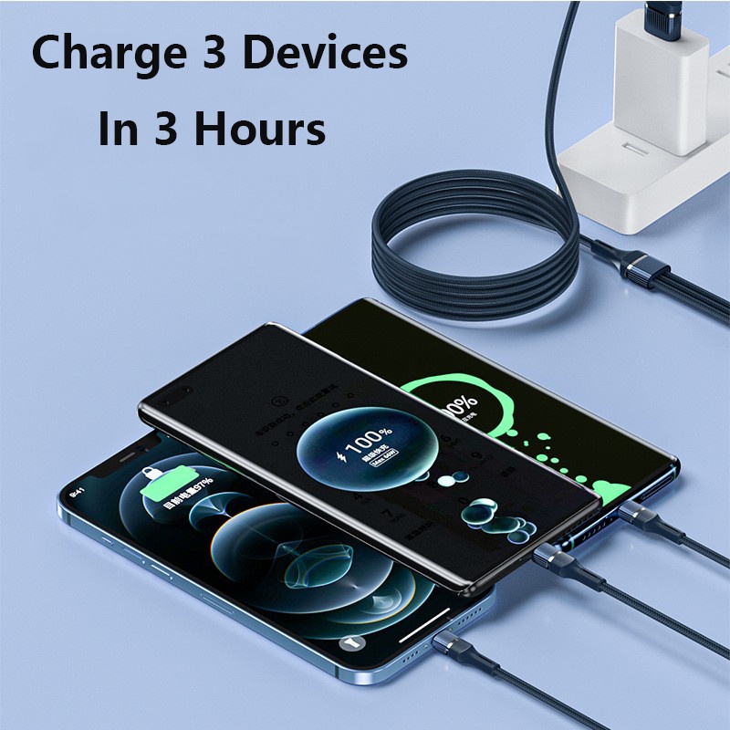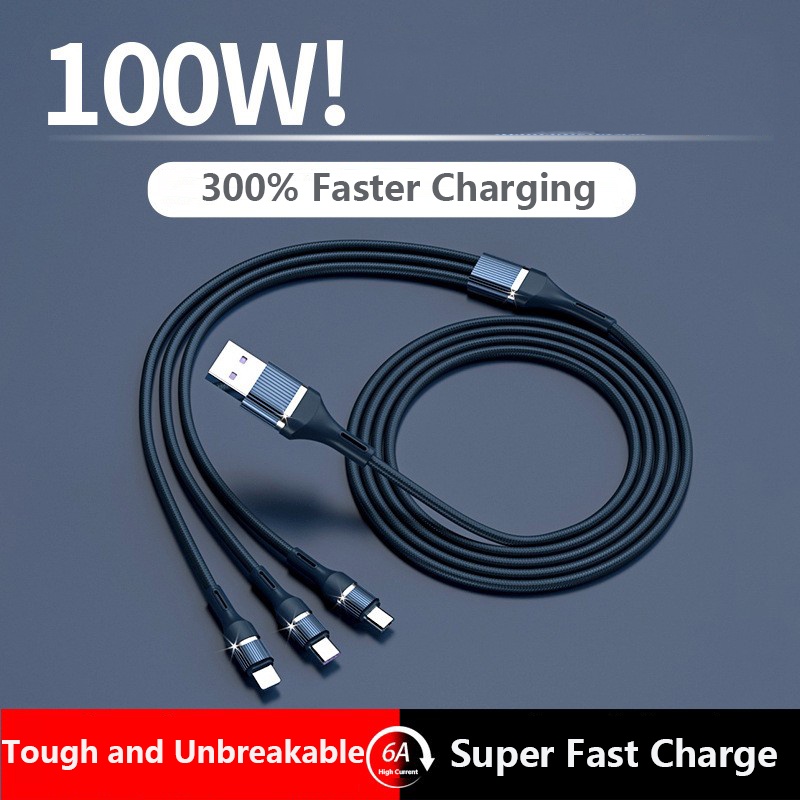 6A Super Fast Charge 3 in 1 Micro USB Type C Charging Cable Nylon Braided Data Cable One Drag Three Phone Tablet Cable