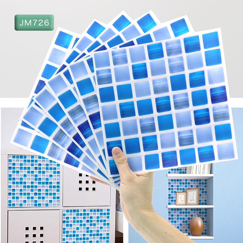 6Pcs Mosaic Tile Wall Stickers Waterproof Self Adhesive Wallpaper Stickers for Kitchen bathroom wall 2D 20X20cm