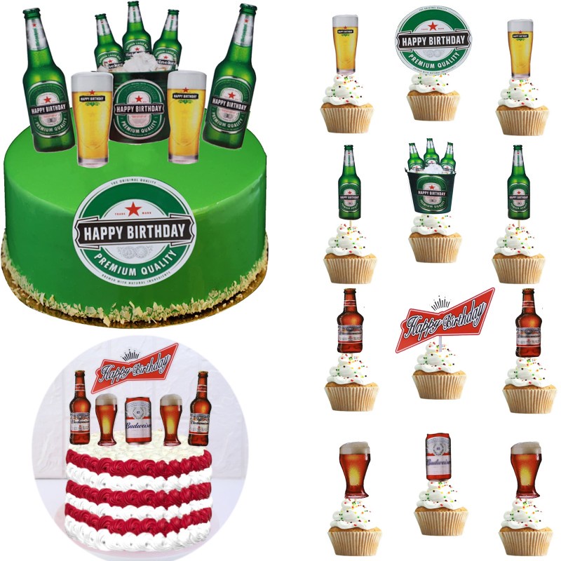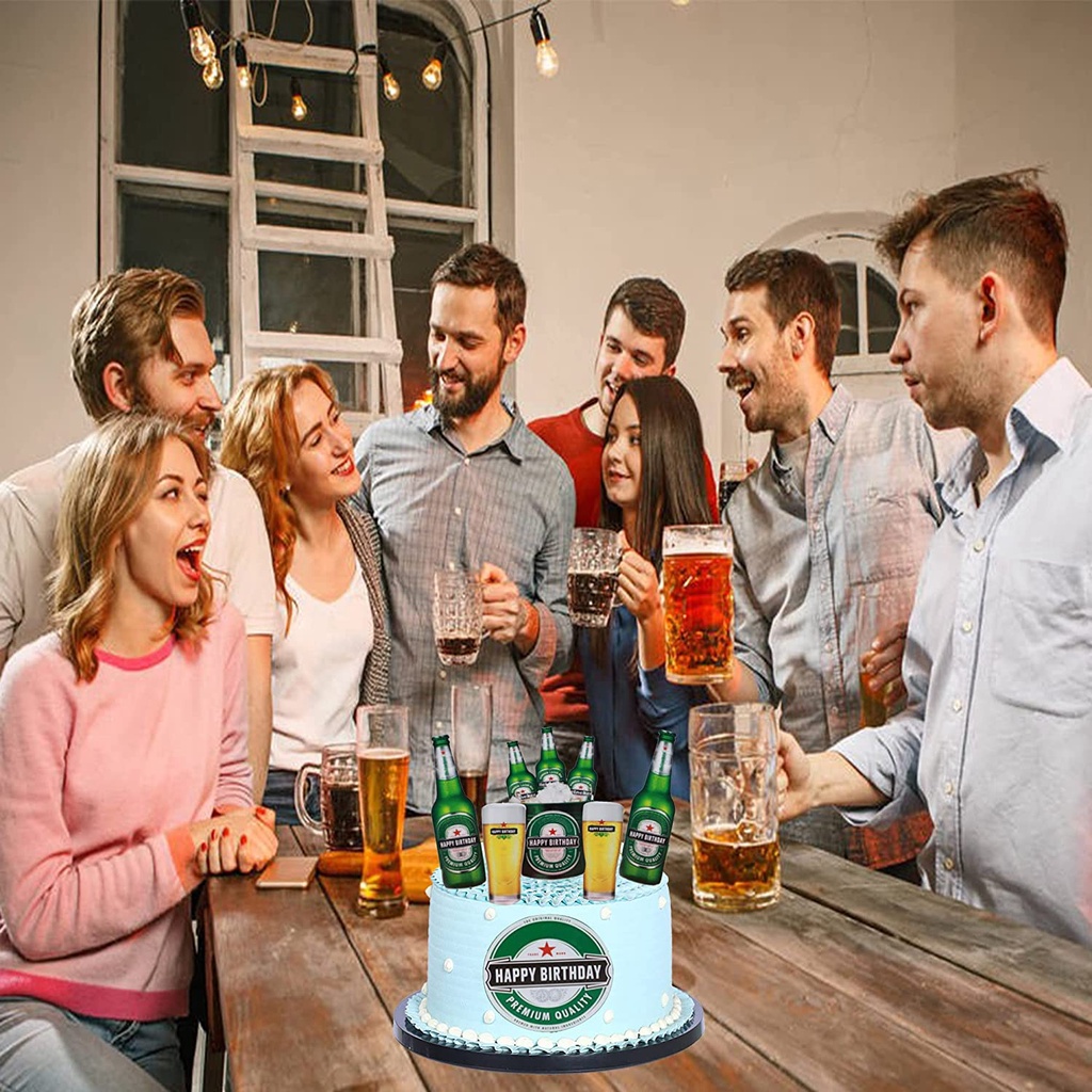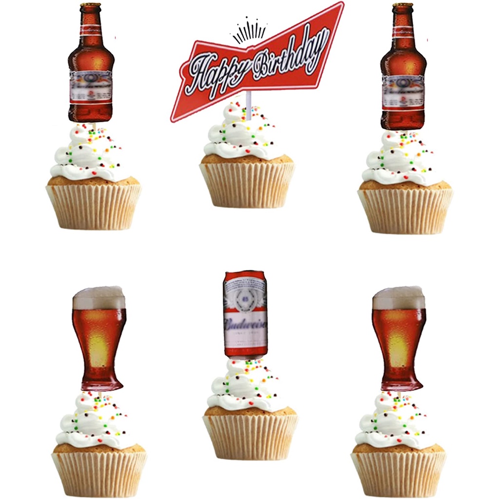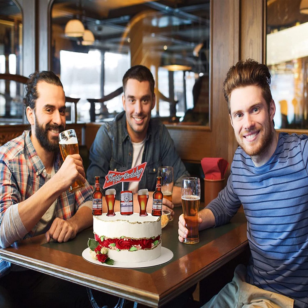 6Pcs Red Wine Bottle Beer Mug Cake Decorations Happy Birthday Beer Cake Toppers for Bar Club Party Decoration Supplies