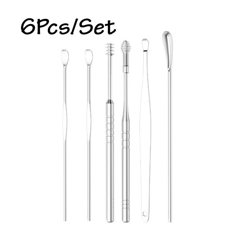 6Pcs/set Portable Multifunctional Ear Wax Remover Ear Cleaning Kit Ear Pick Earpick Ear Cleaner Spoon Care Ear Clean Tools